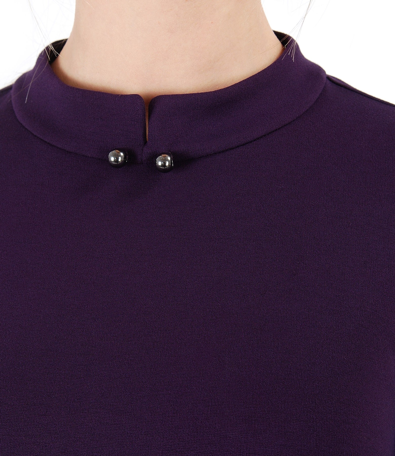 Rochie din jerse elastic, cu guler tunica, maneci lungi si buzunare laterale. Se inchide cu fermoar metalic pe mijloc spate.