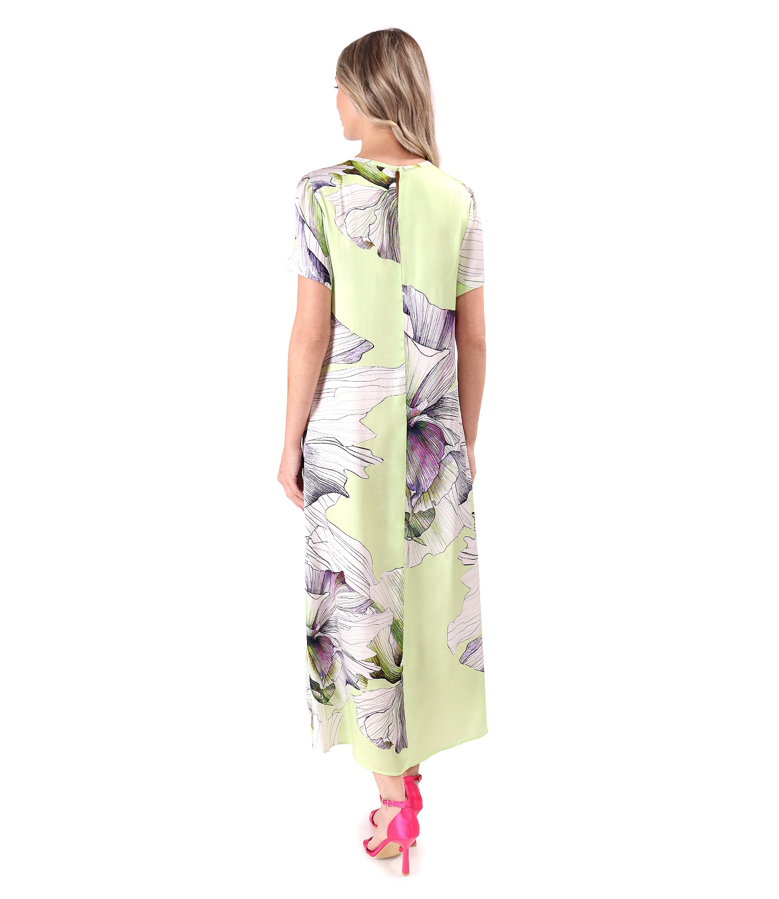 Rochie midi din satin de viscoza imprimata cu flori supradimensionate (Verde Deschis), marimea