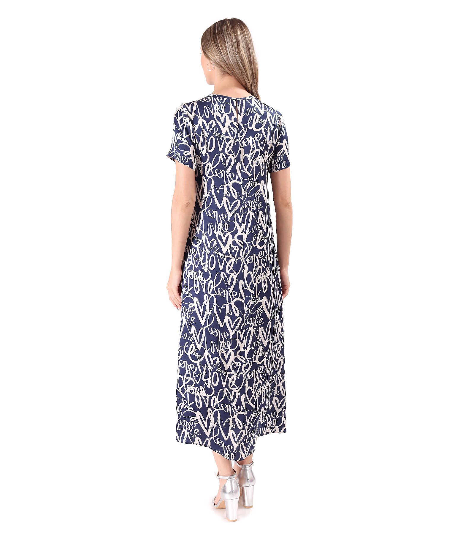 Rochie midi din satin de viscoza imprimata cu inimi (Albastru Roial), marimea