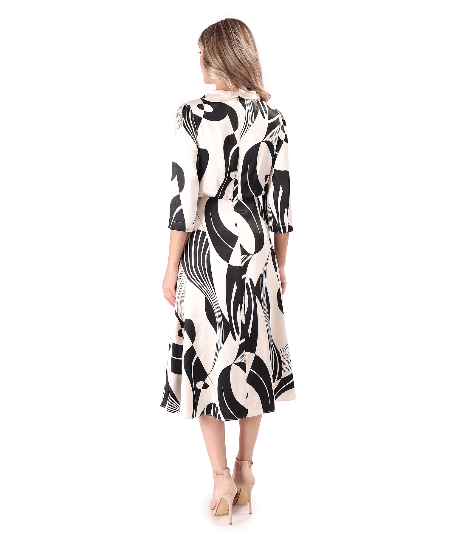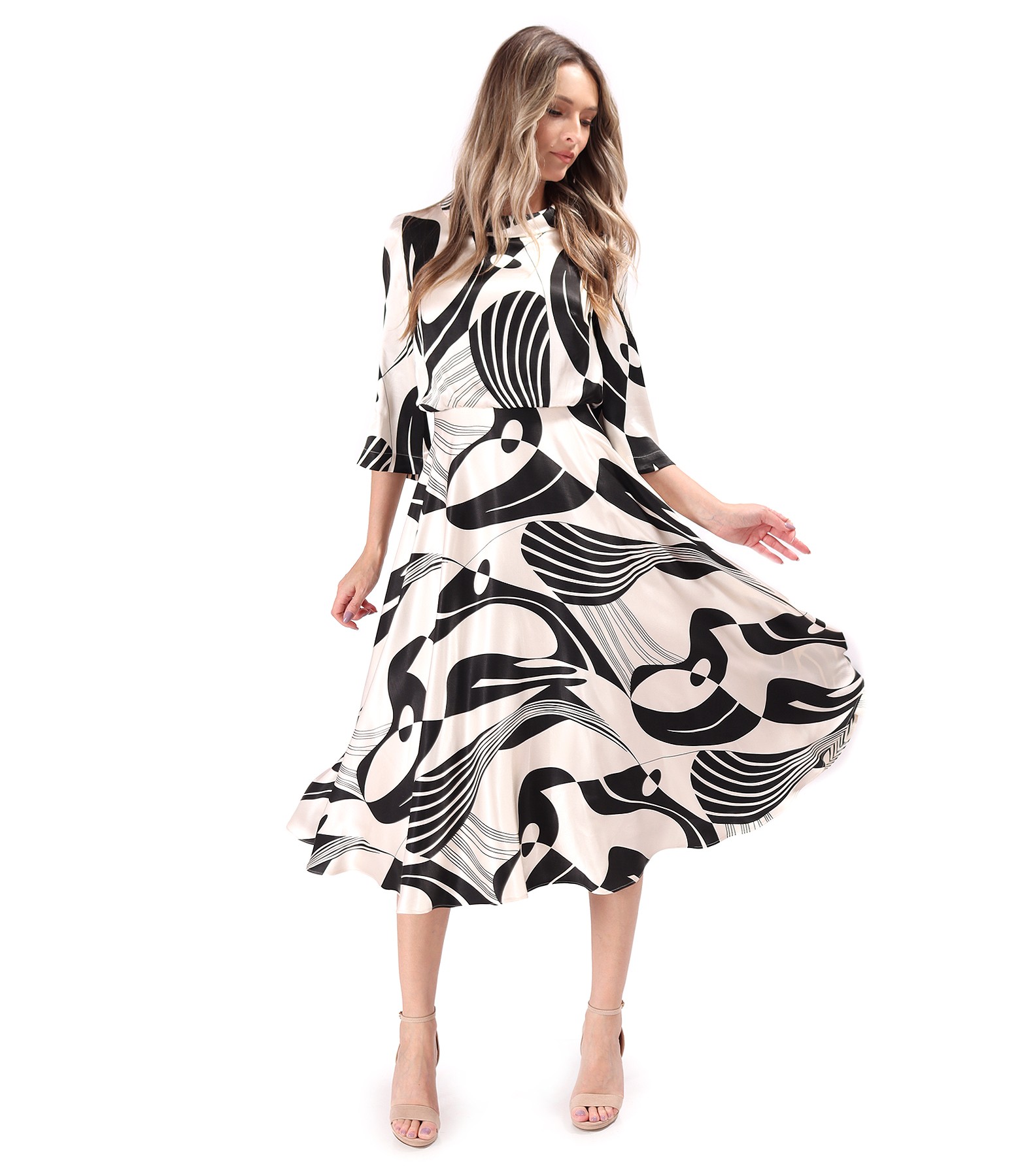 Rochie midi din satin de viscoza imprimata cu motive geometrice