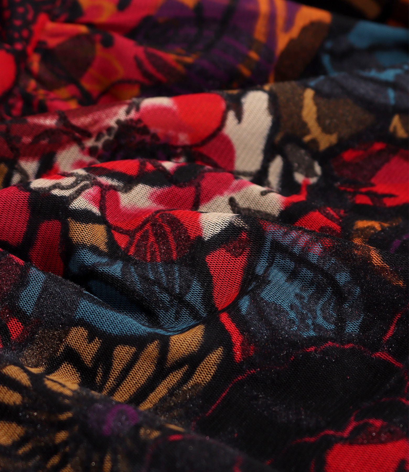 Rochie midi din tul elastic brocat cu catifea cu motive florale