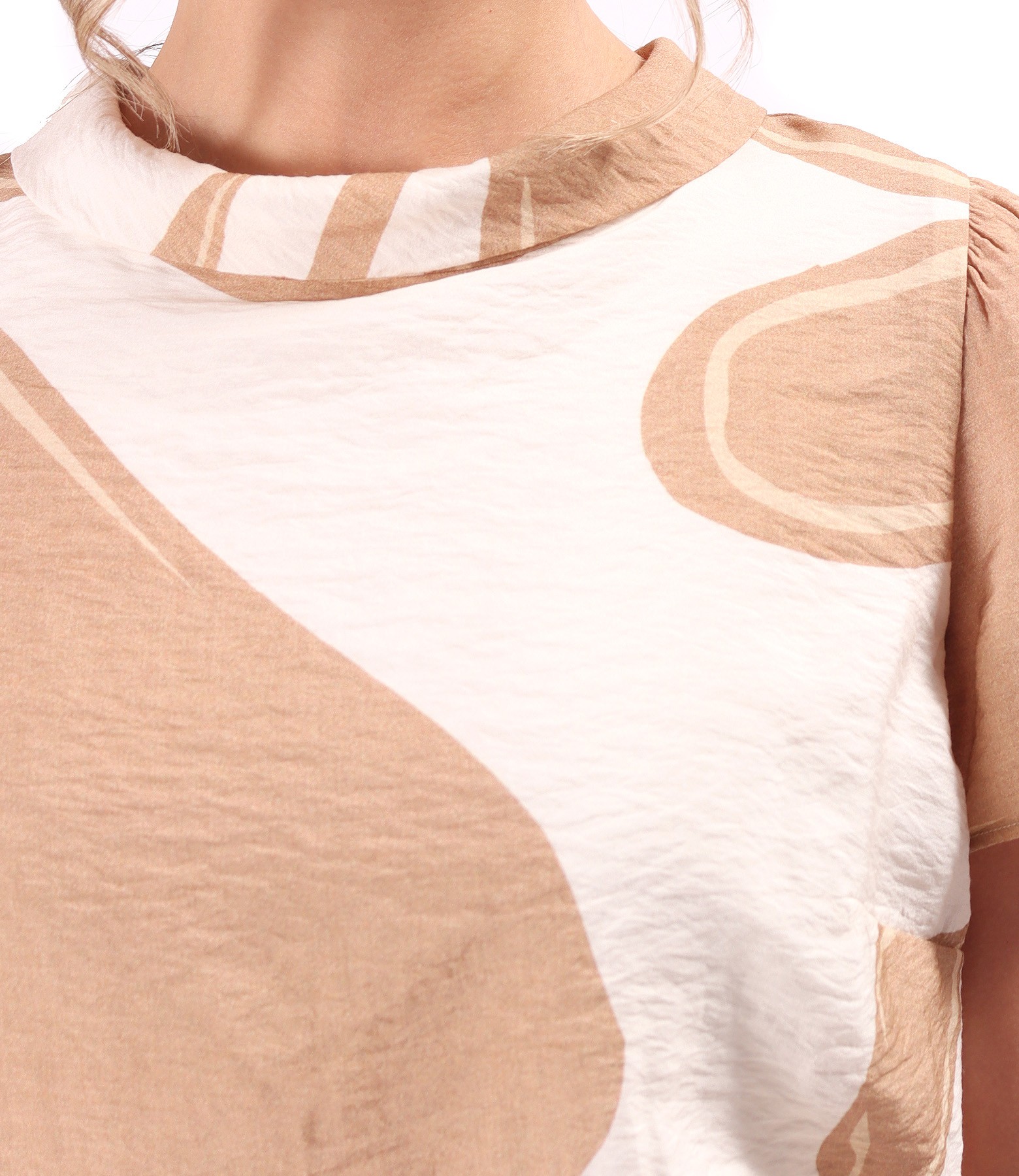 Rochie midi din viscoza usor creponata, imprimata digital cu motive florale, dublata cu viscoza, maneci scurte si guler rotund. Se inchide cu fermoar ascuns pe mijloc spate. Pozitia imprimeului variaza per produs.