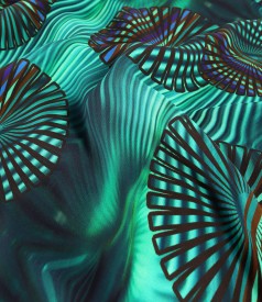 Rochie midi din viscoza imprimata cu motive geometrice, dublata cu viscoza, maneci scurte tip aripioara. Se poate purta cu esarfa Loreta in talie din acelasi material. Esarfa se poate cumpara separat.