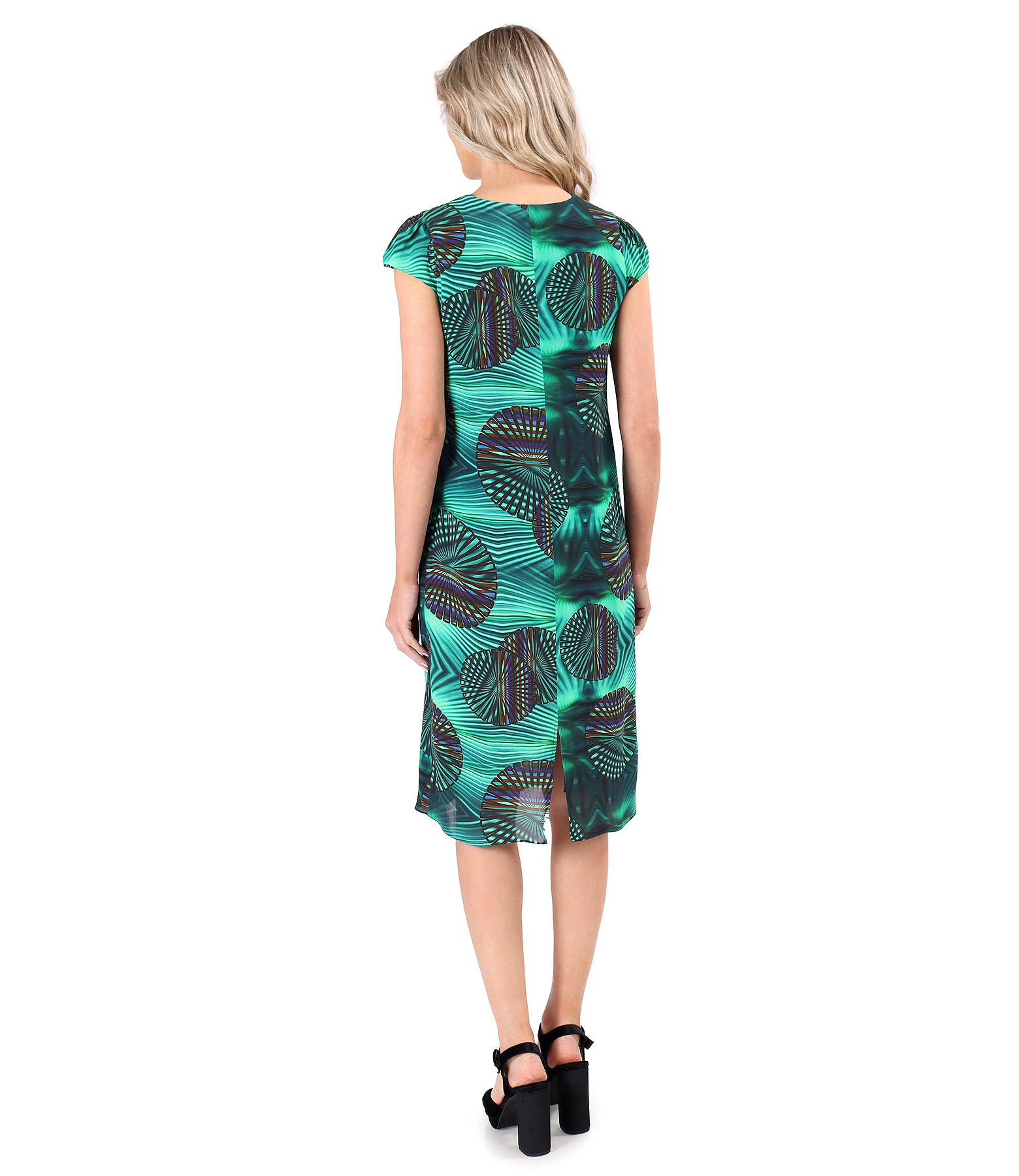 Rochie midi din viscoza imprimata cu motive geometrice (Verde), marimea