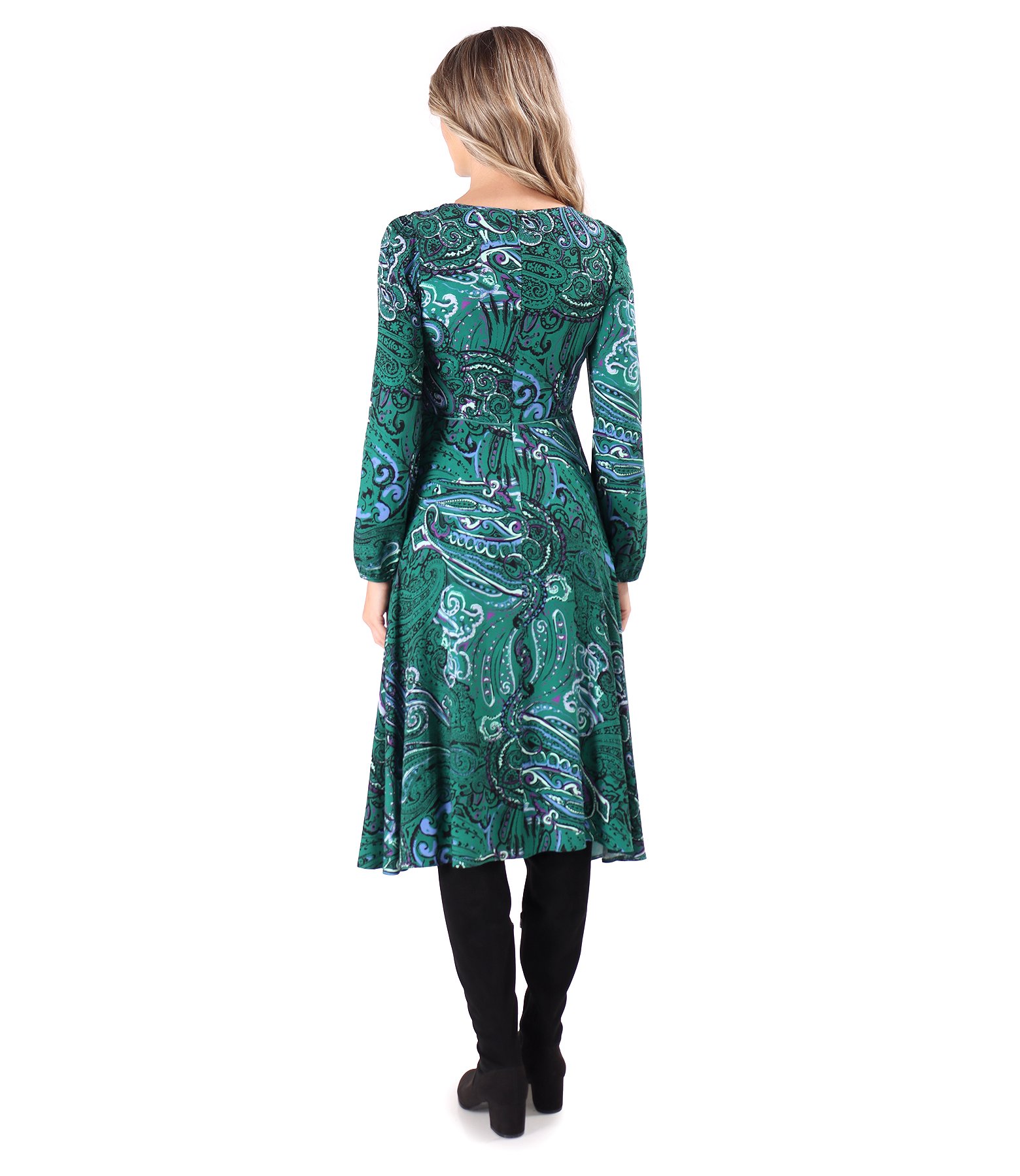 Rochie midi din viscoza imprimata cu motive paisley (Verde Pin), marimea