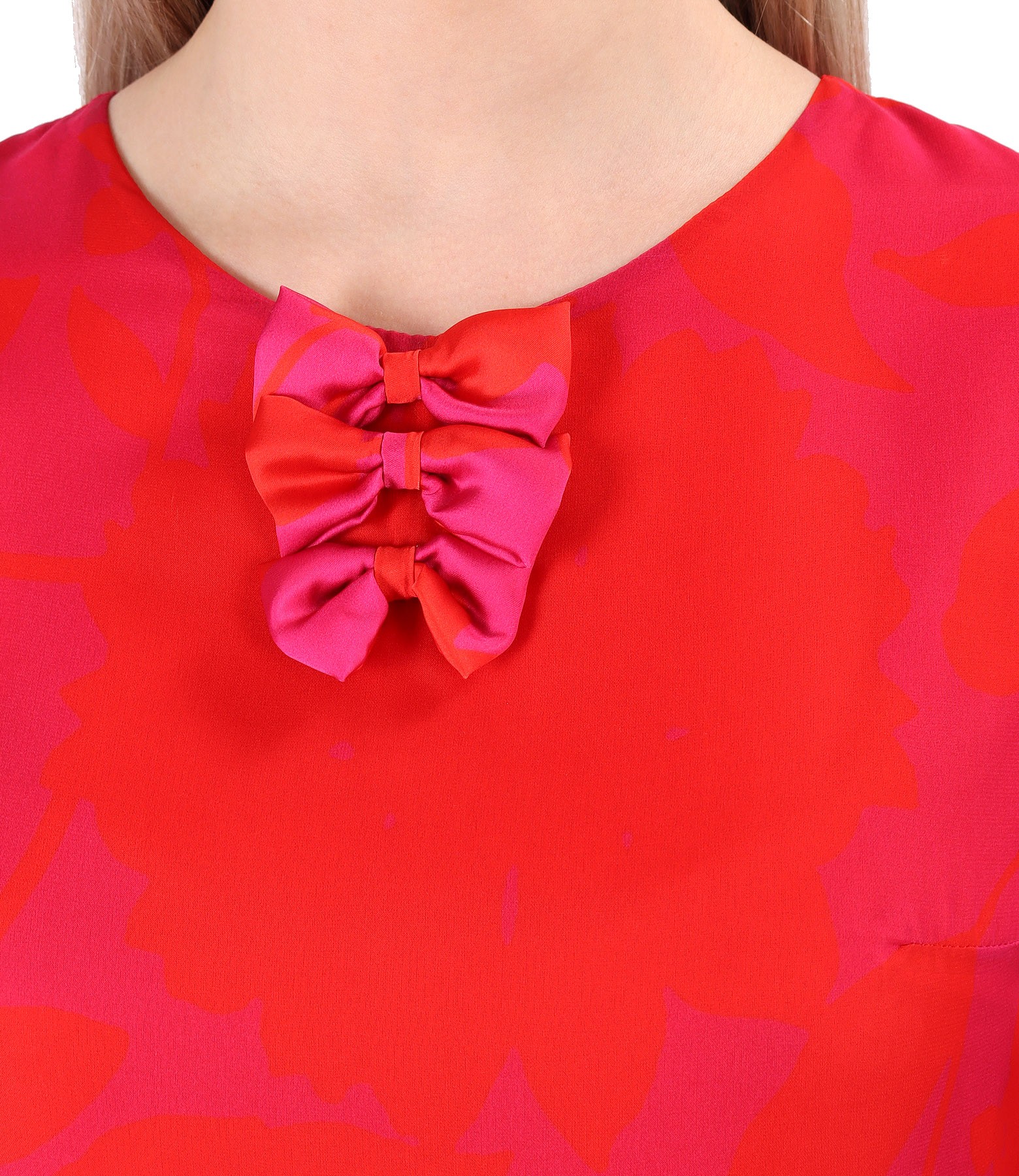 Rochie midi din voal tip organza imprimat cu motive florale (Rosu), marimea