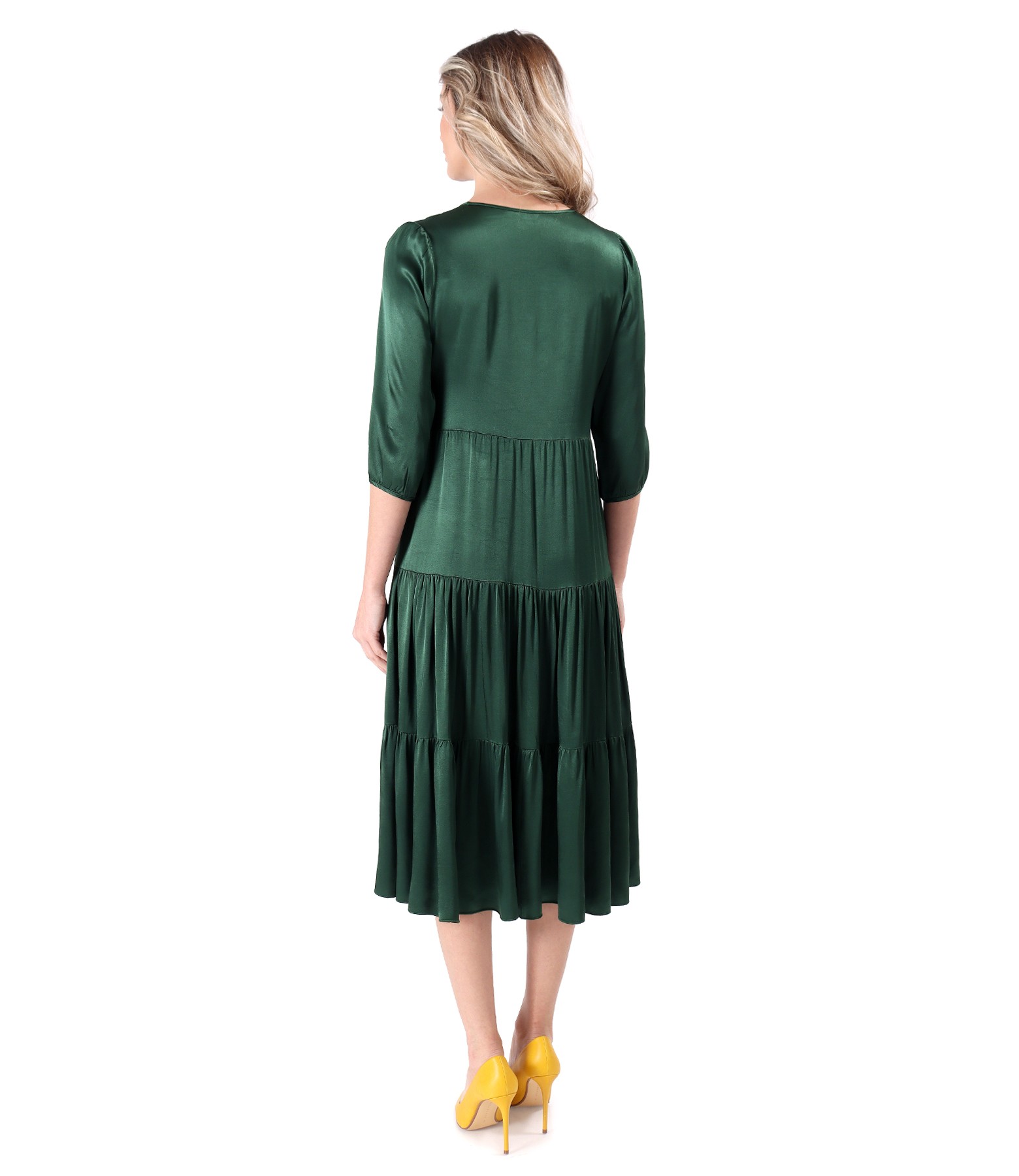 Rochie midi eleganta cu volane din satin de viscoza (verde smarald), marimea