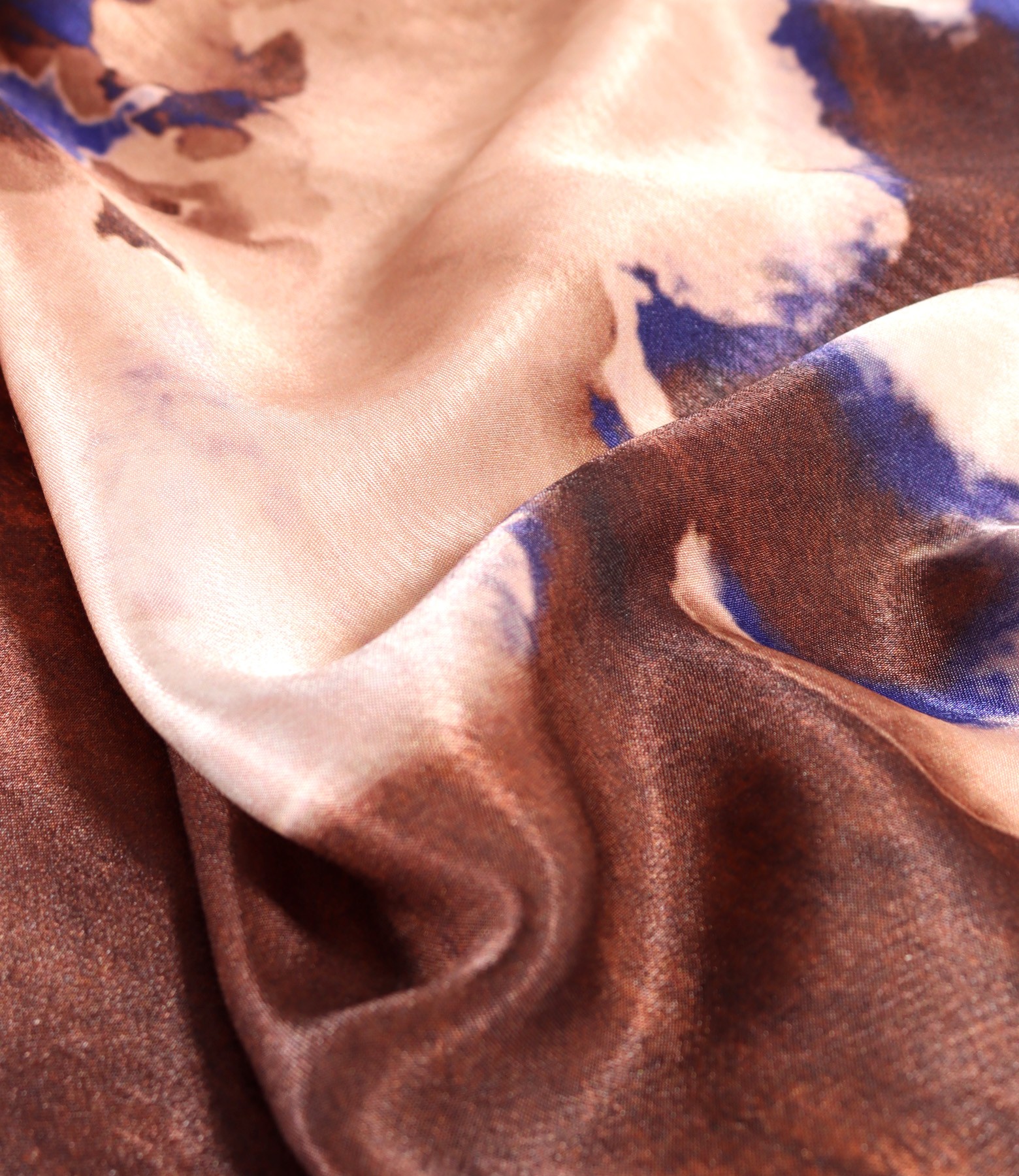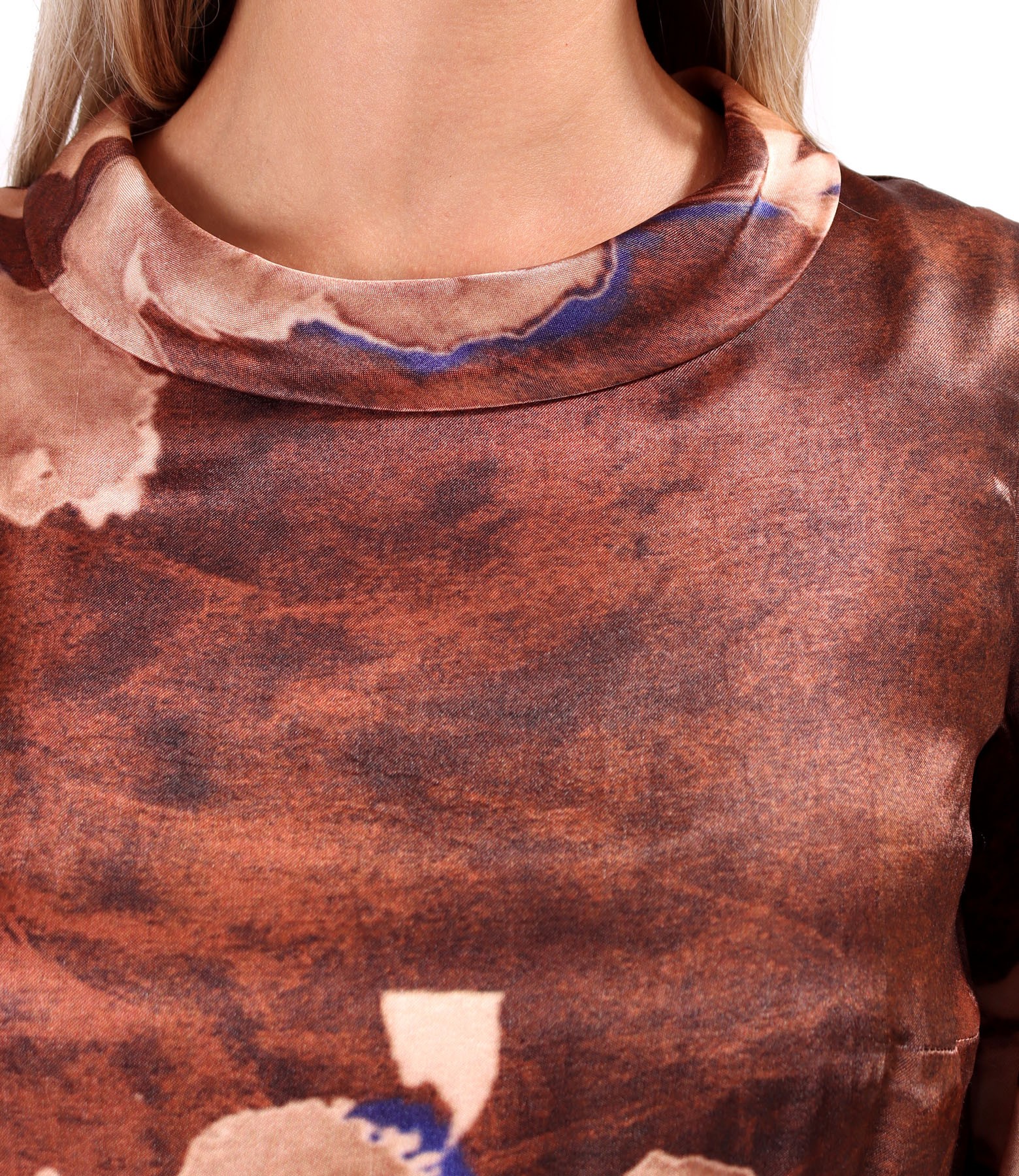 Rochie midi eleganta din viscoza satinata imprimat cu flori supradimensionate (Maro), marimea