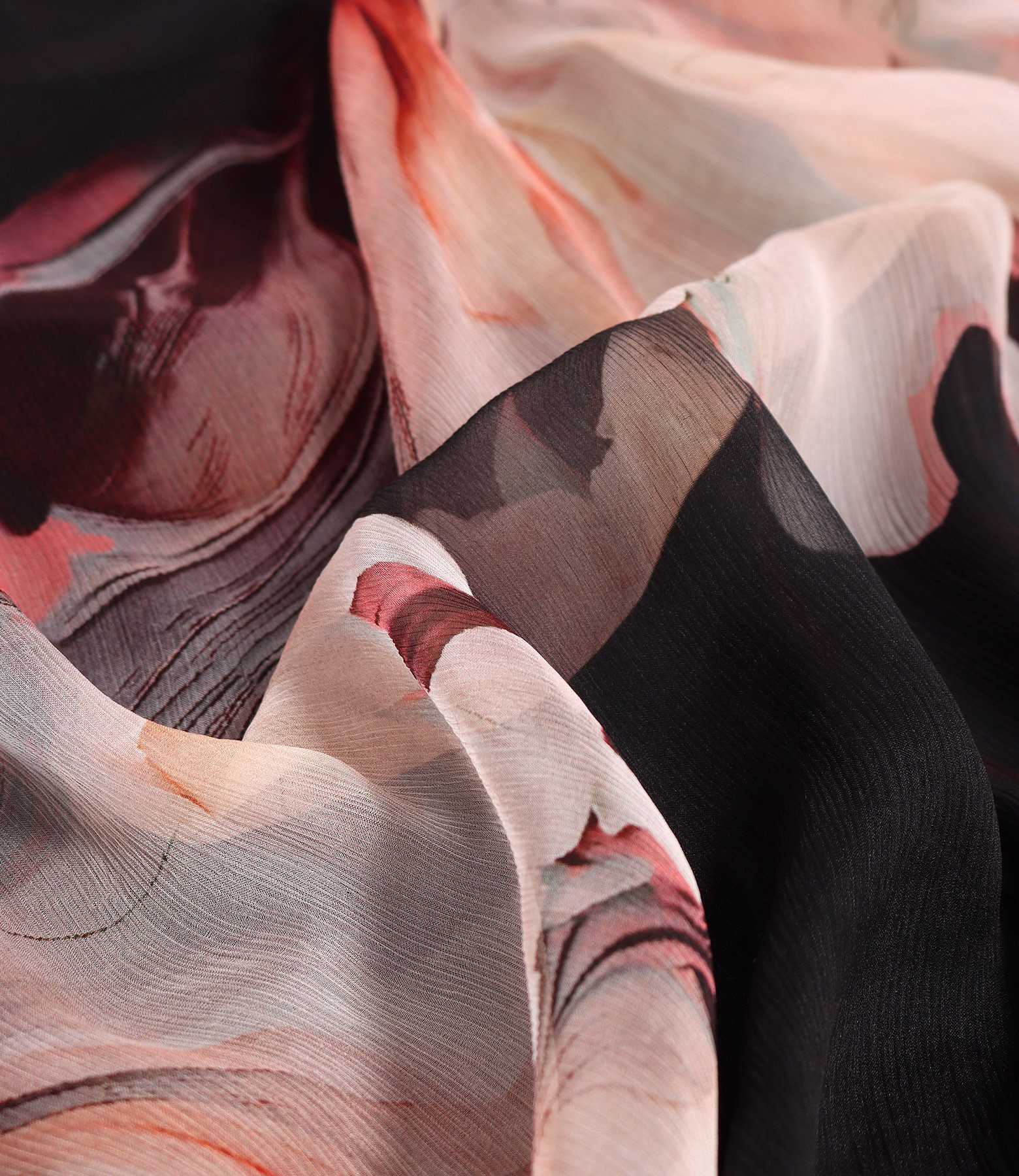 Rochie midi fluture din voal de matase naturala imprimata cu motive florale (Negru), marimea