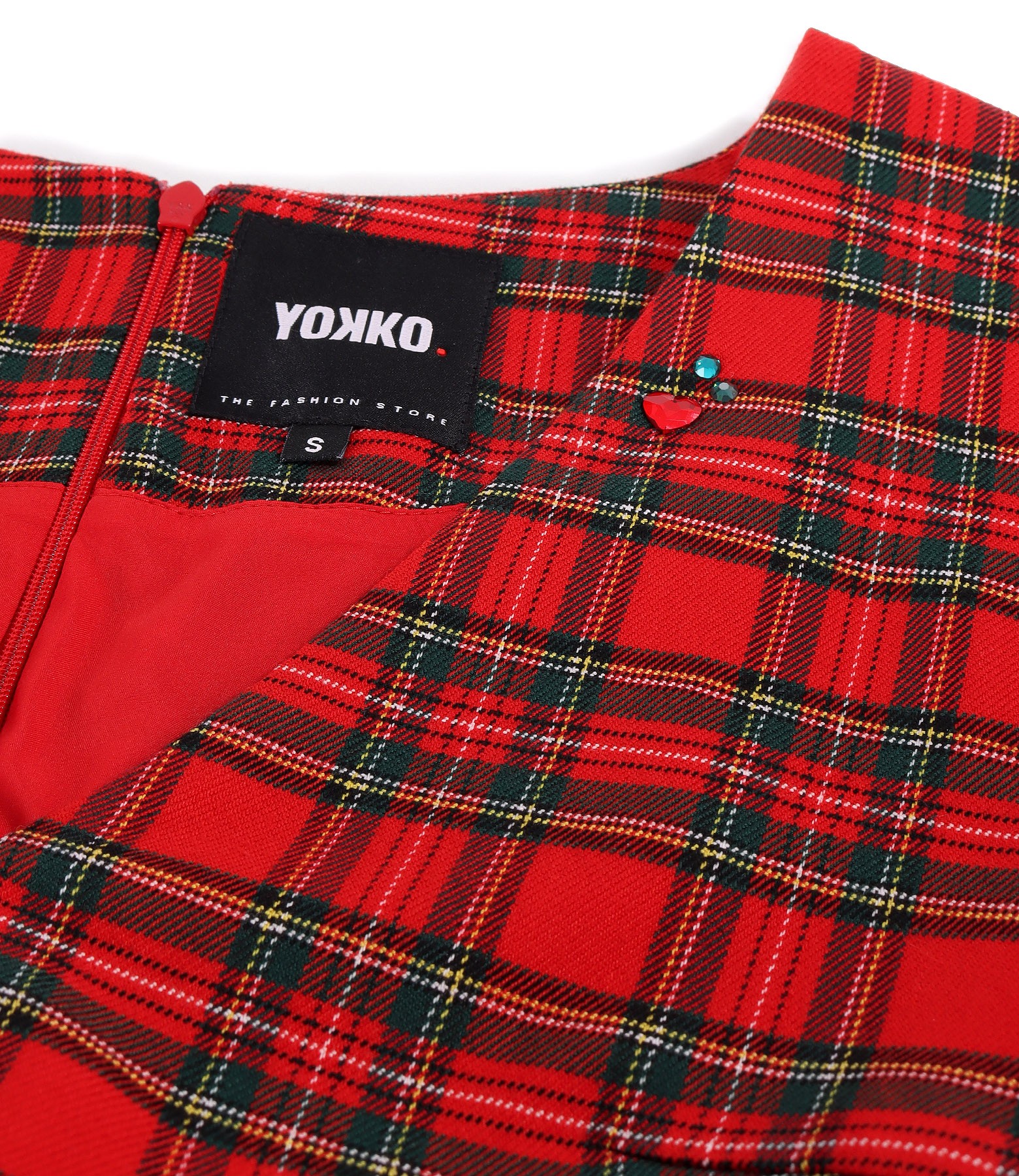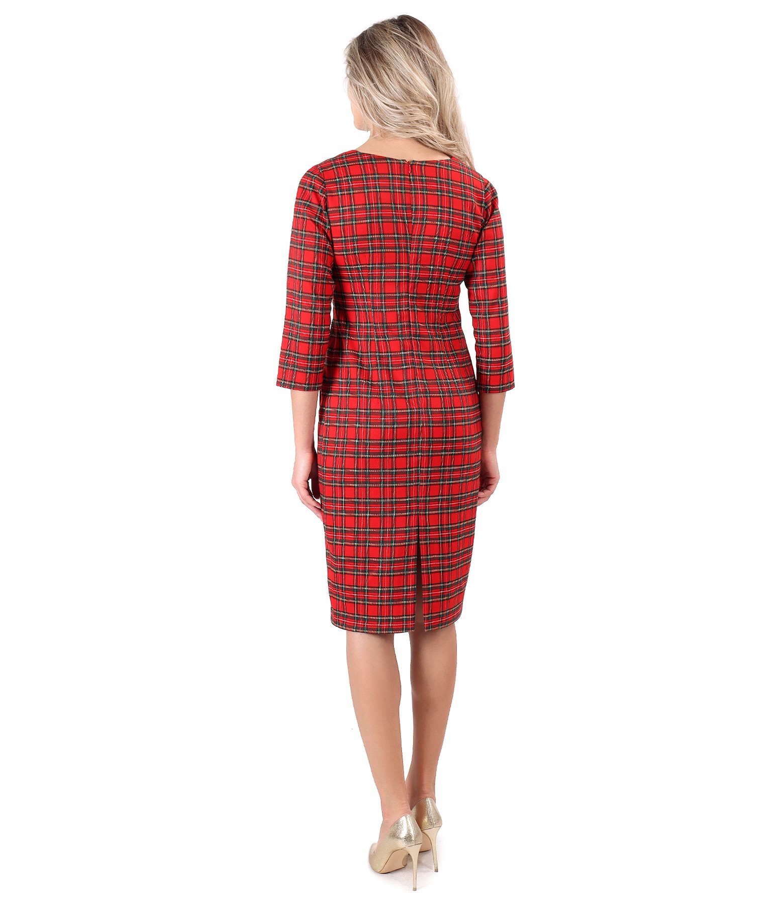 Rochie midi in carouri cu aplicatie de cristale pe decolteu (Rosu), marimea