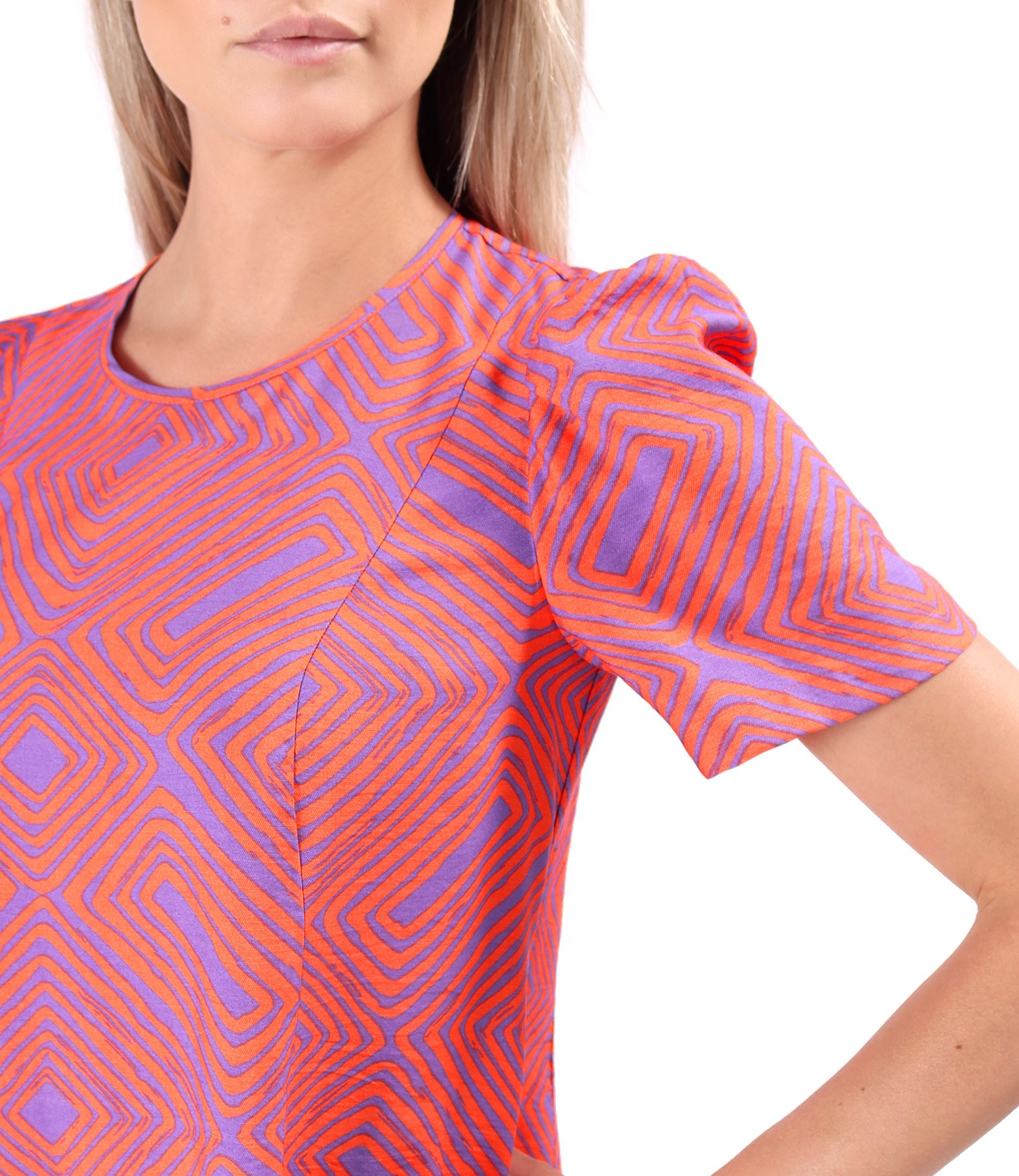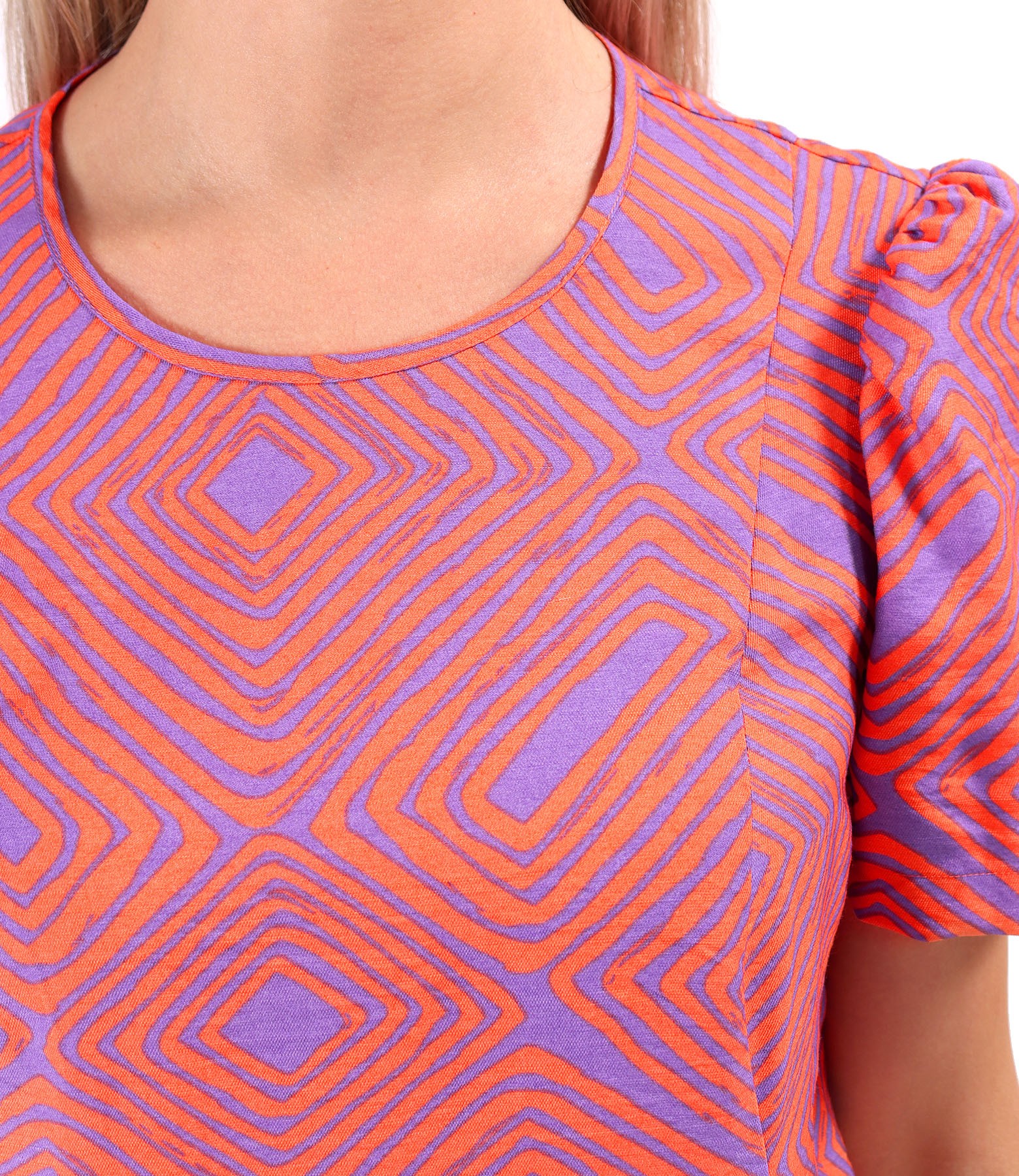 Rochie midi lejera imprimata cu motive geometrice (Rosu Orange), marimea
