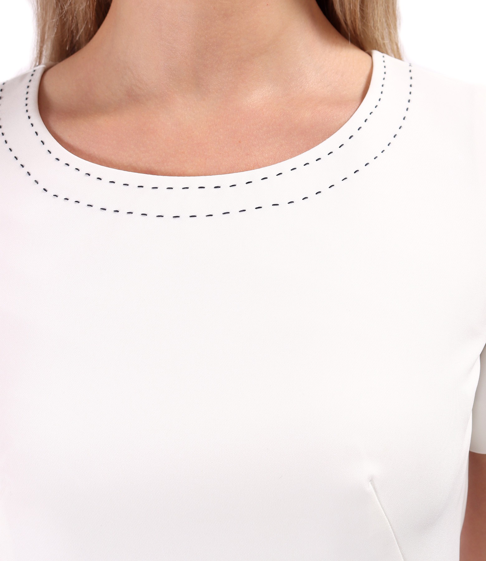 Rochie office cu cusatura decorativa la decolteu (Alb-Ecru), marimea