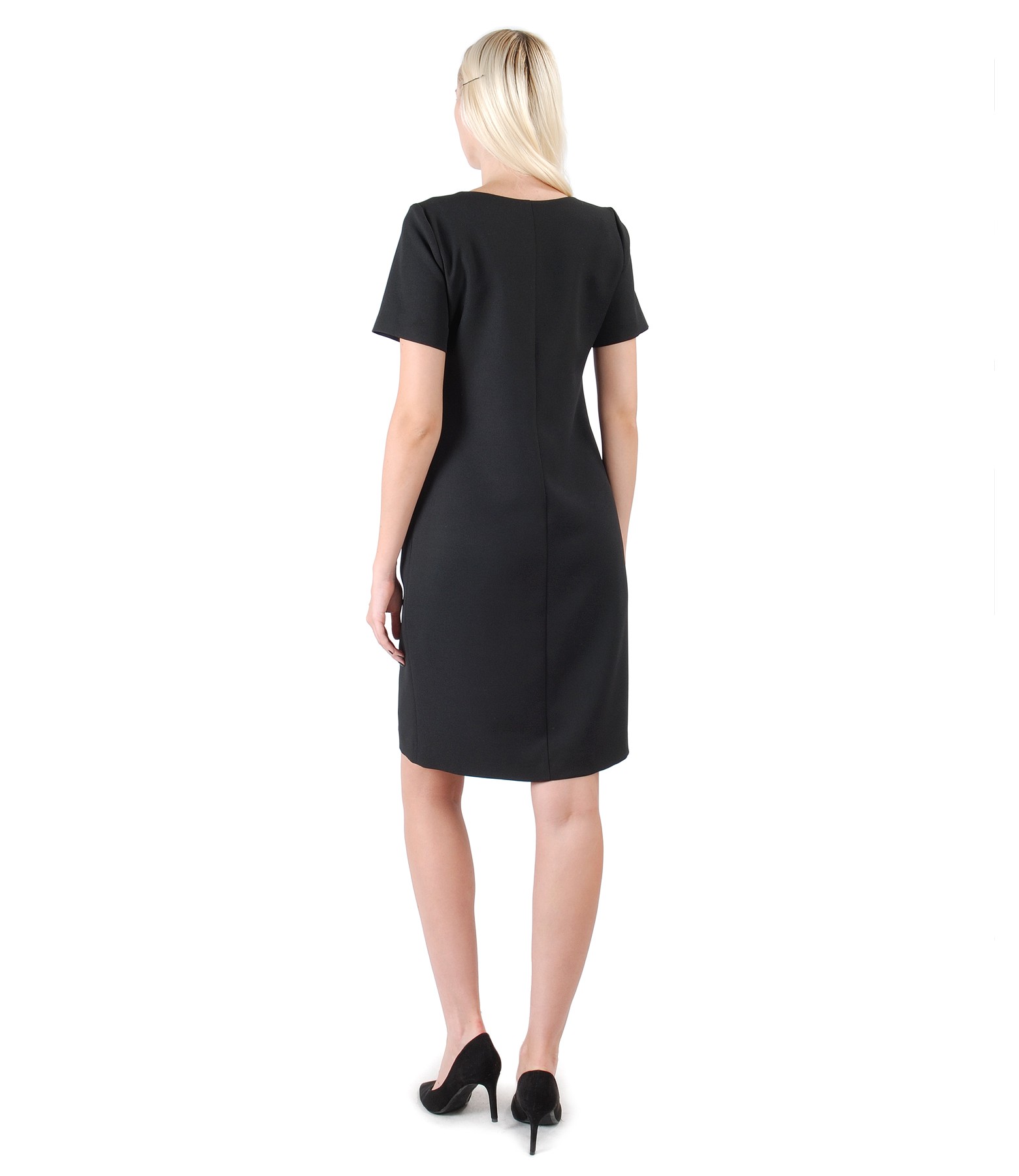 Rochie office din stofa elastica cu fermoar (Negru), marimea