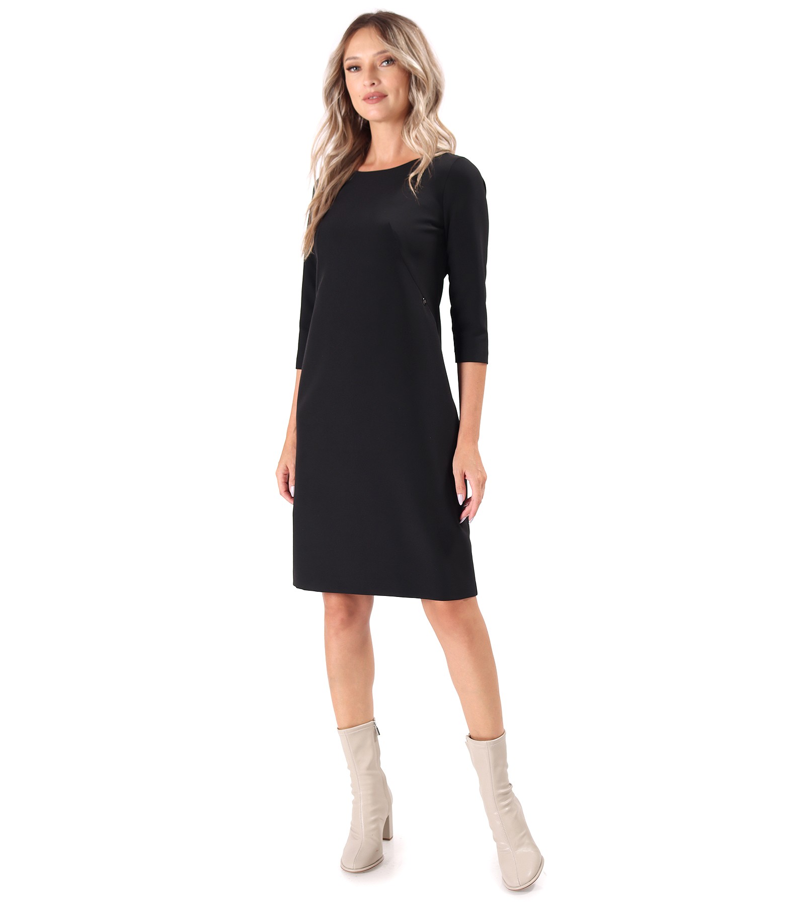 Rochie office din stofa elastica cu maneci 3/4 (Negru), marimea