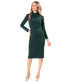 Rochie office din stofa elastica cu maneci lungi (Verde pin), marimea