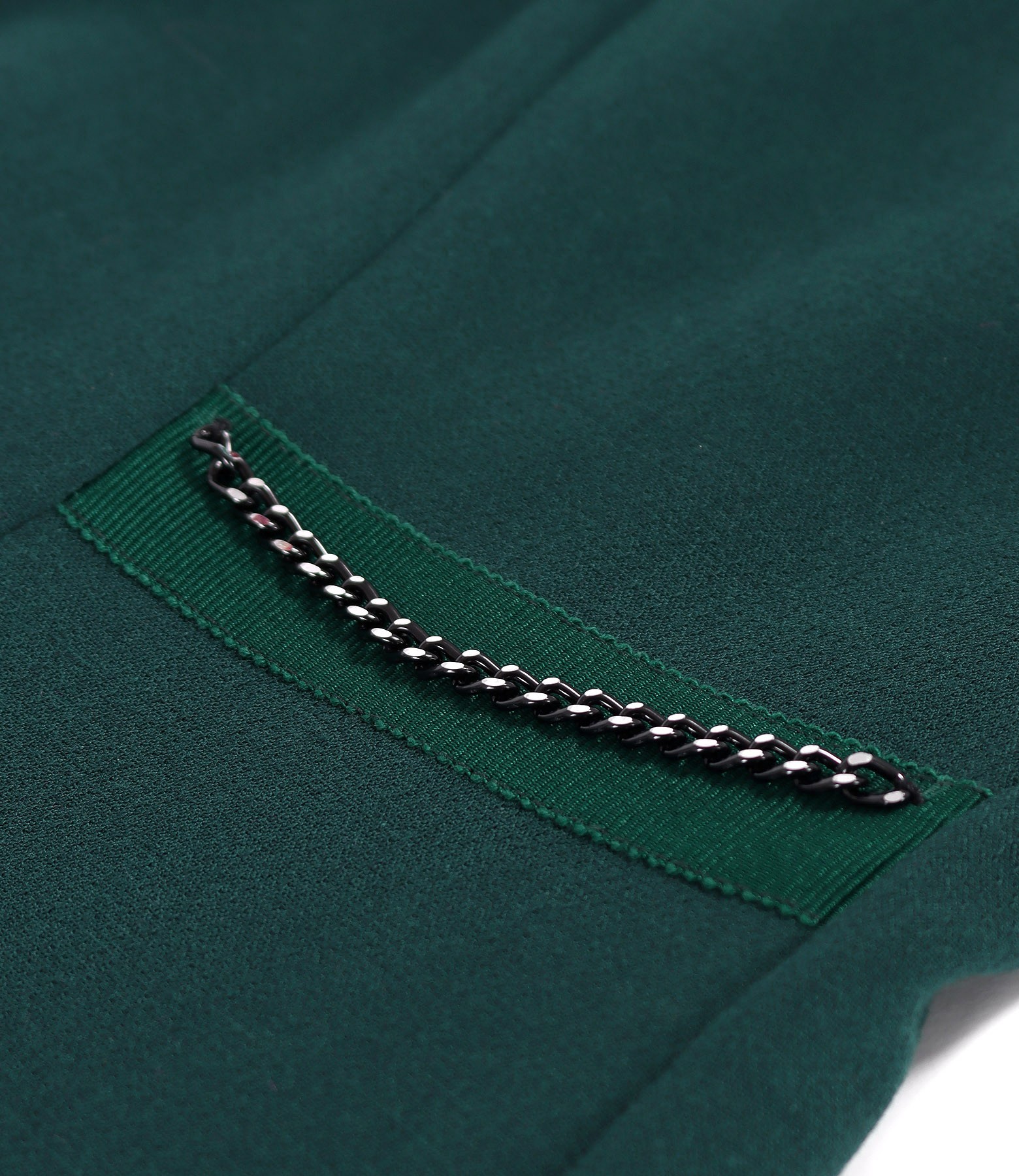Rochie office evazata din stofa elastica cu viscoza, captusita, cu maneci 3/4, decolteu rotund si lant decorativ cu rips in talie. Se inchide cu fermoar ascuns pe mijloc spate.