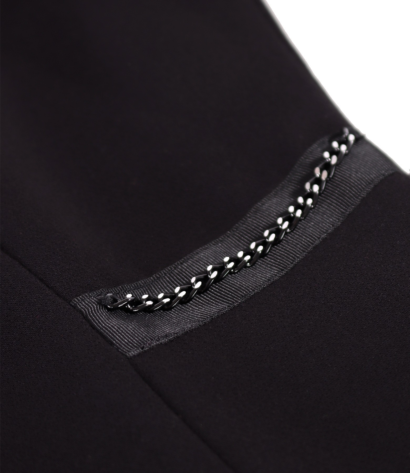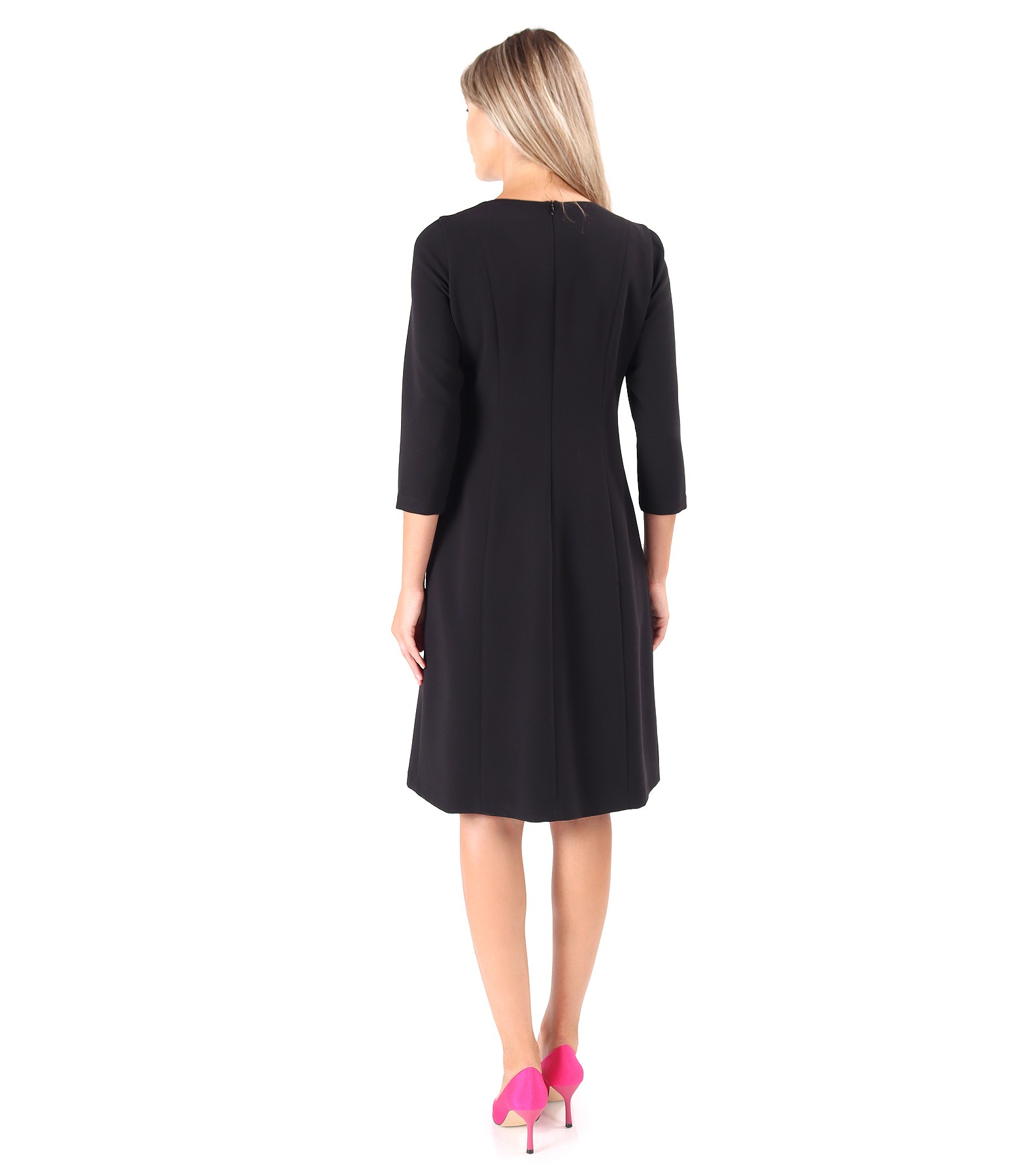 Rochie office evazata din stofa elastica cu viscoza, captusita, cu maneci 3/4, decolteu rotund si lant decorativ cu rips in talie. Se inchide cu fermoar ascuns pe mijloc spate.