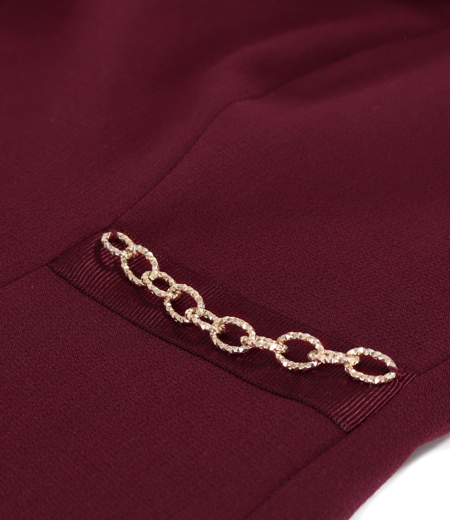 Rochie office evazata din stofa elastica cu viscoza, captusita, cu maneci 3/4, decolteu rotund si lant decorativ cu rips in talie. Se inchide cu fermoar ascuns pe mijloc spate.