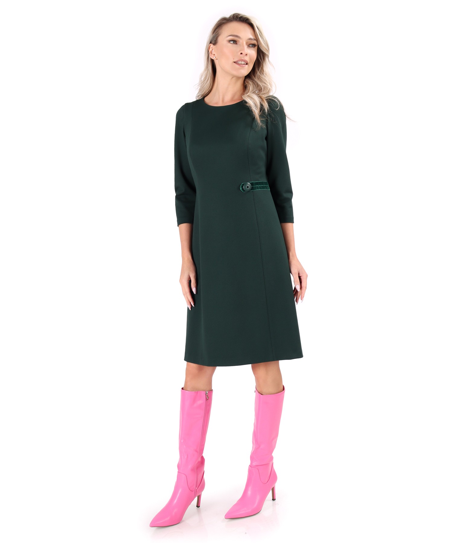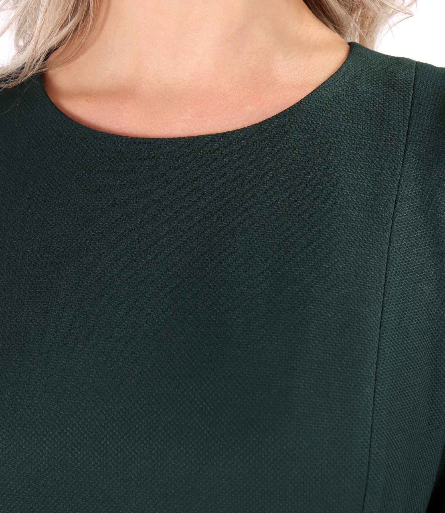 Rochie office evazata din stofa texturata cu viscoza (Verde pin), marimea