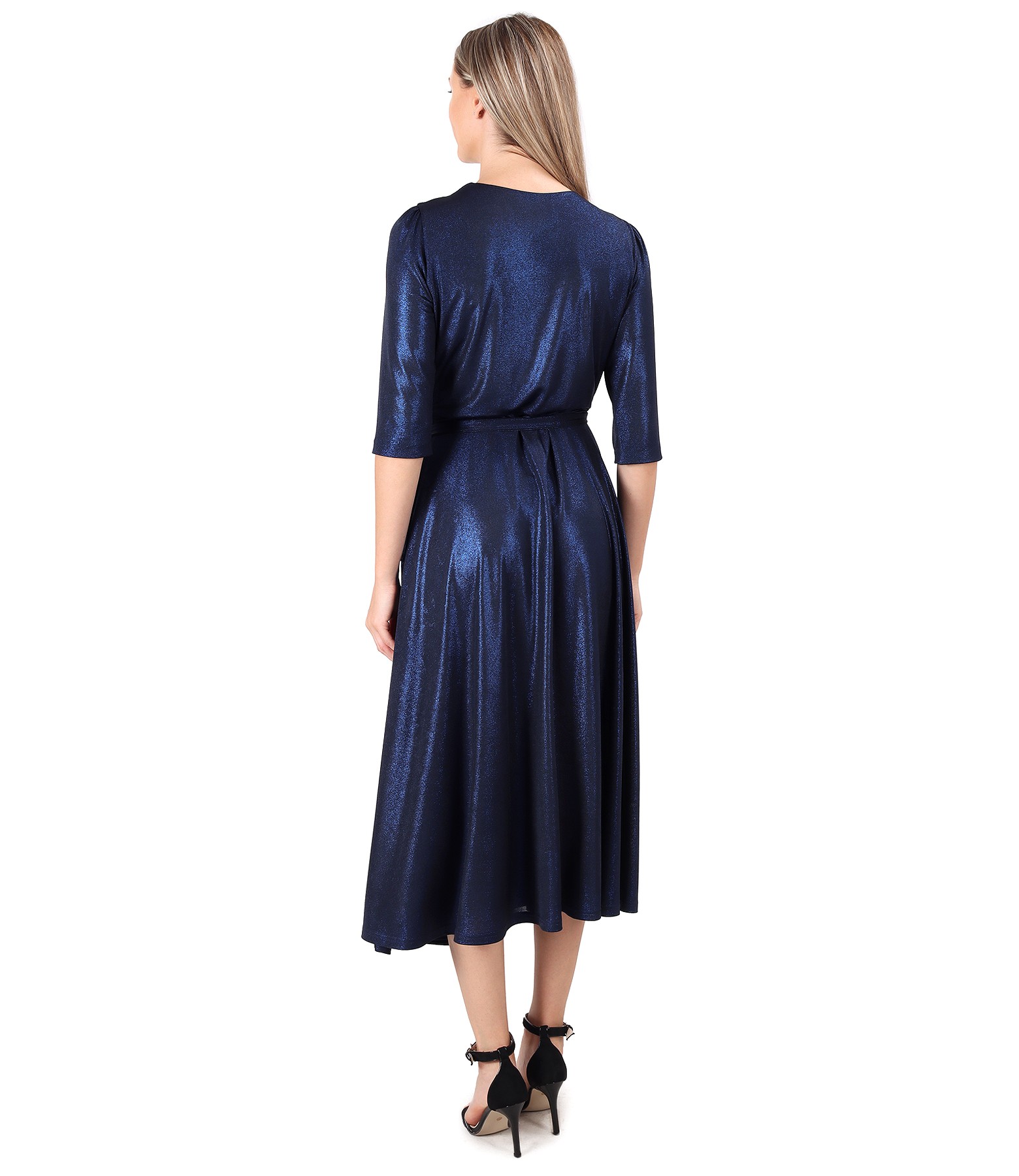 Rochie midi petrecuta din jerse elastic cu efect lucios (Albastru), marimea