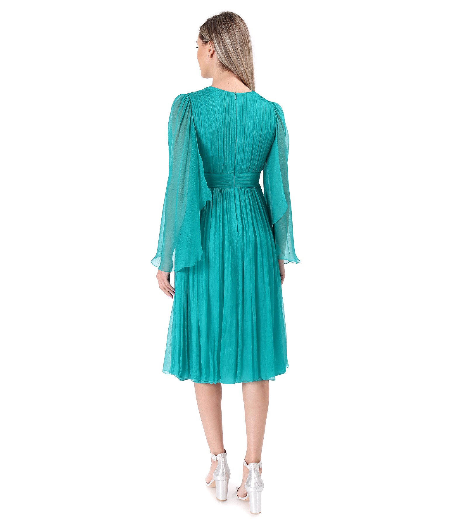 Rochie scurta de seara din voal de matase naturala (Turcoaz), marimea