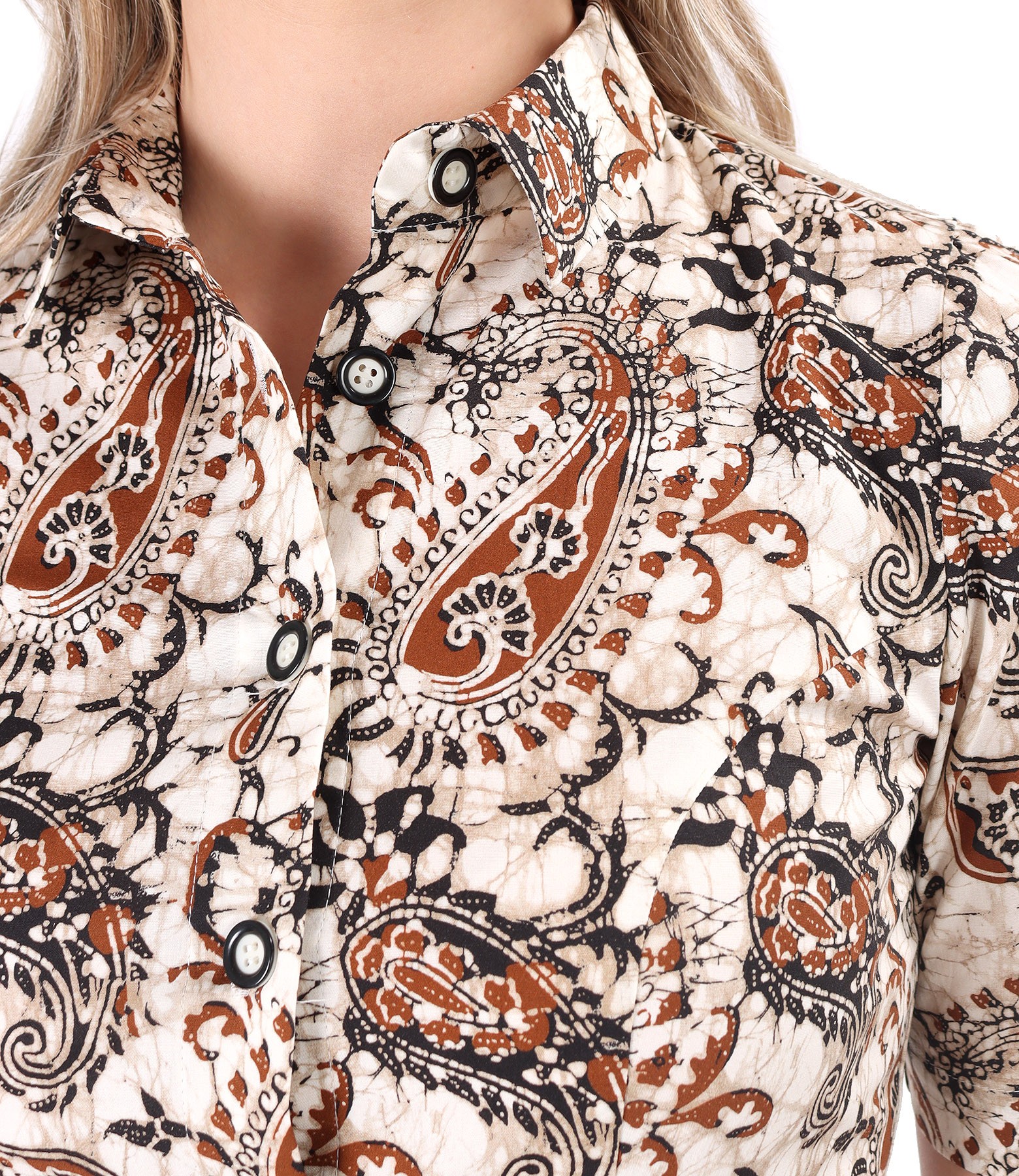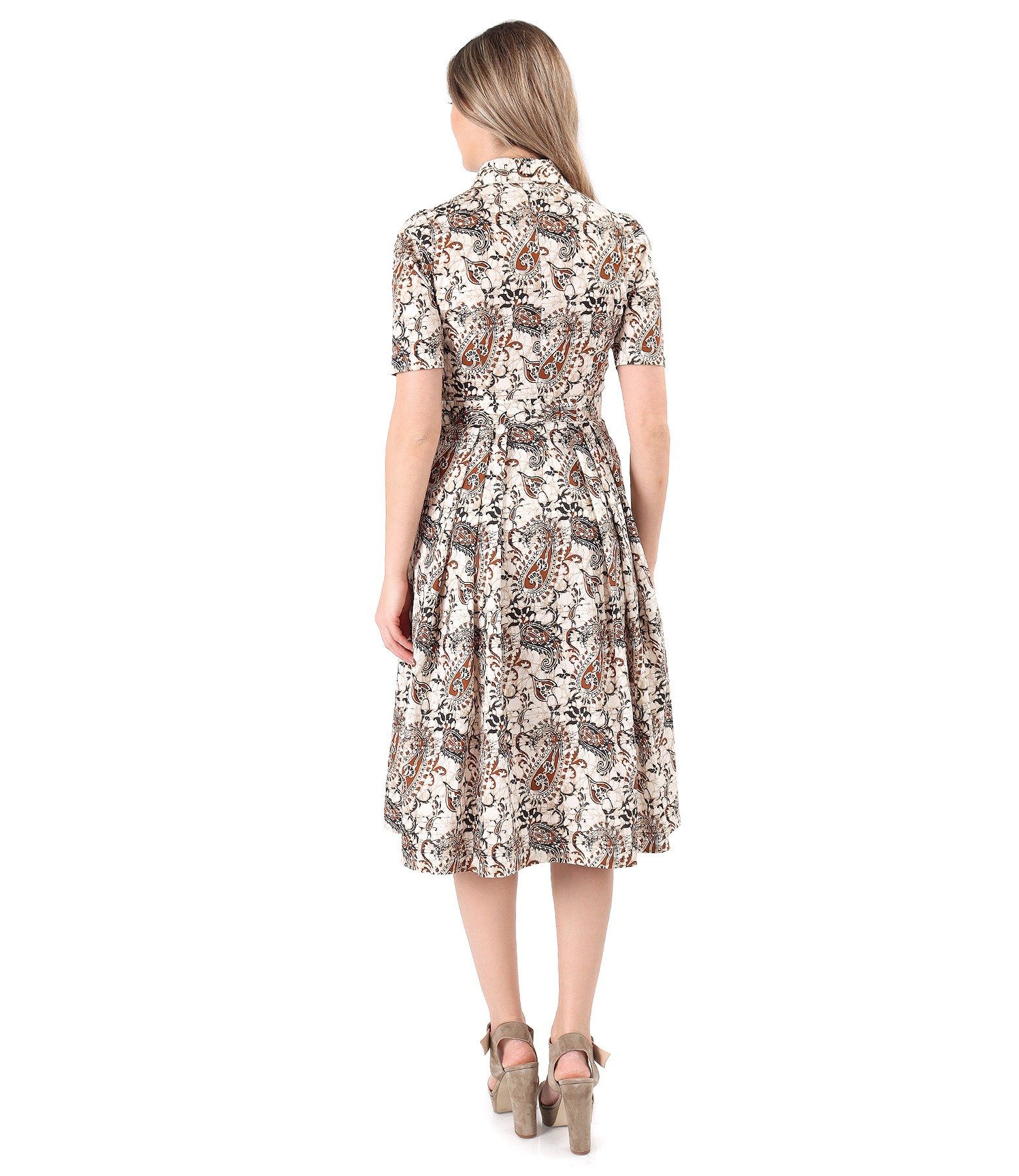 Rochie tip camasa din bumbac elastic imprimat cu lire (Bej), marimea