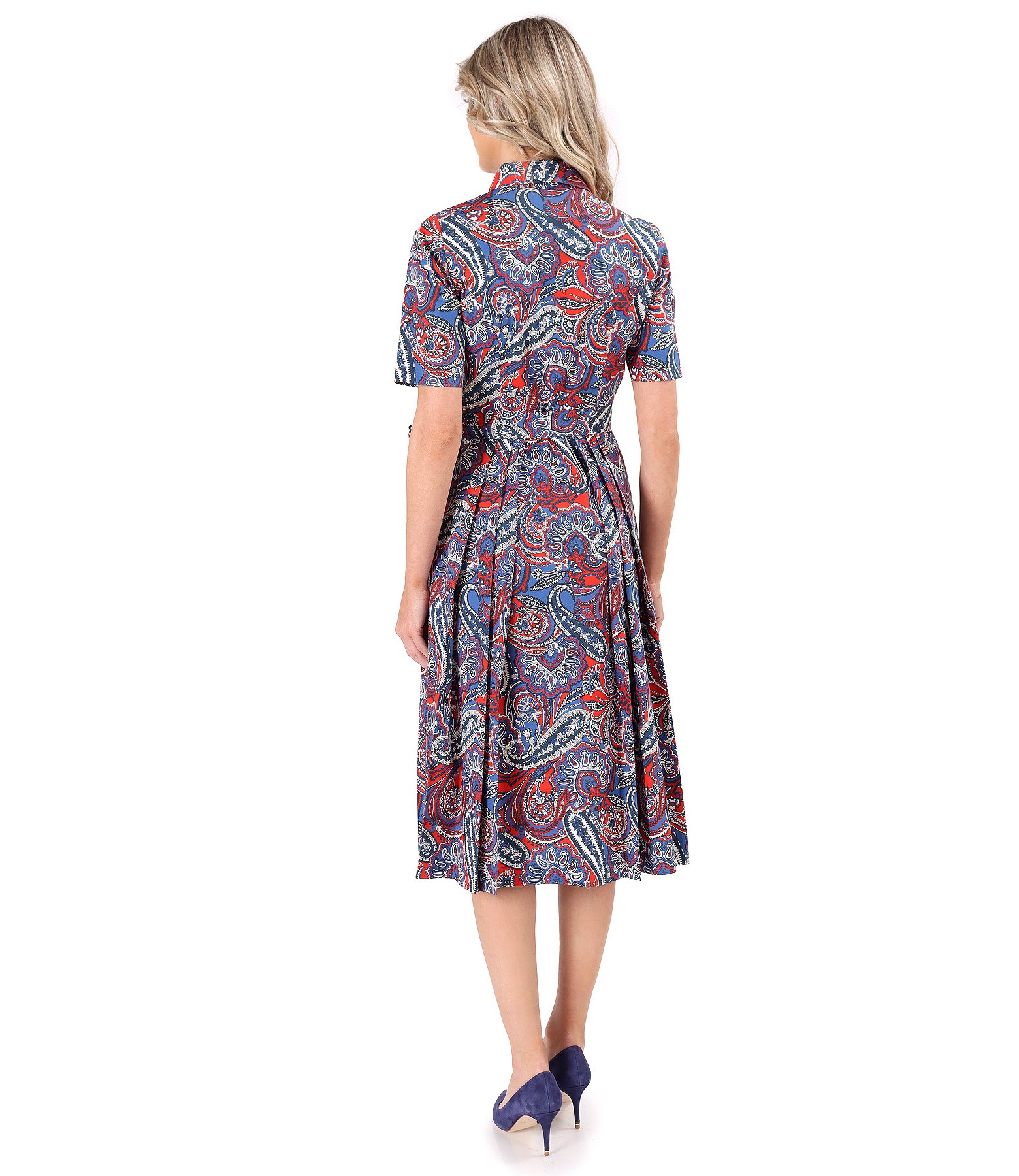 Rochie tip camasa din bumbac elastic imprimat cu lire