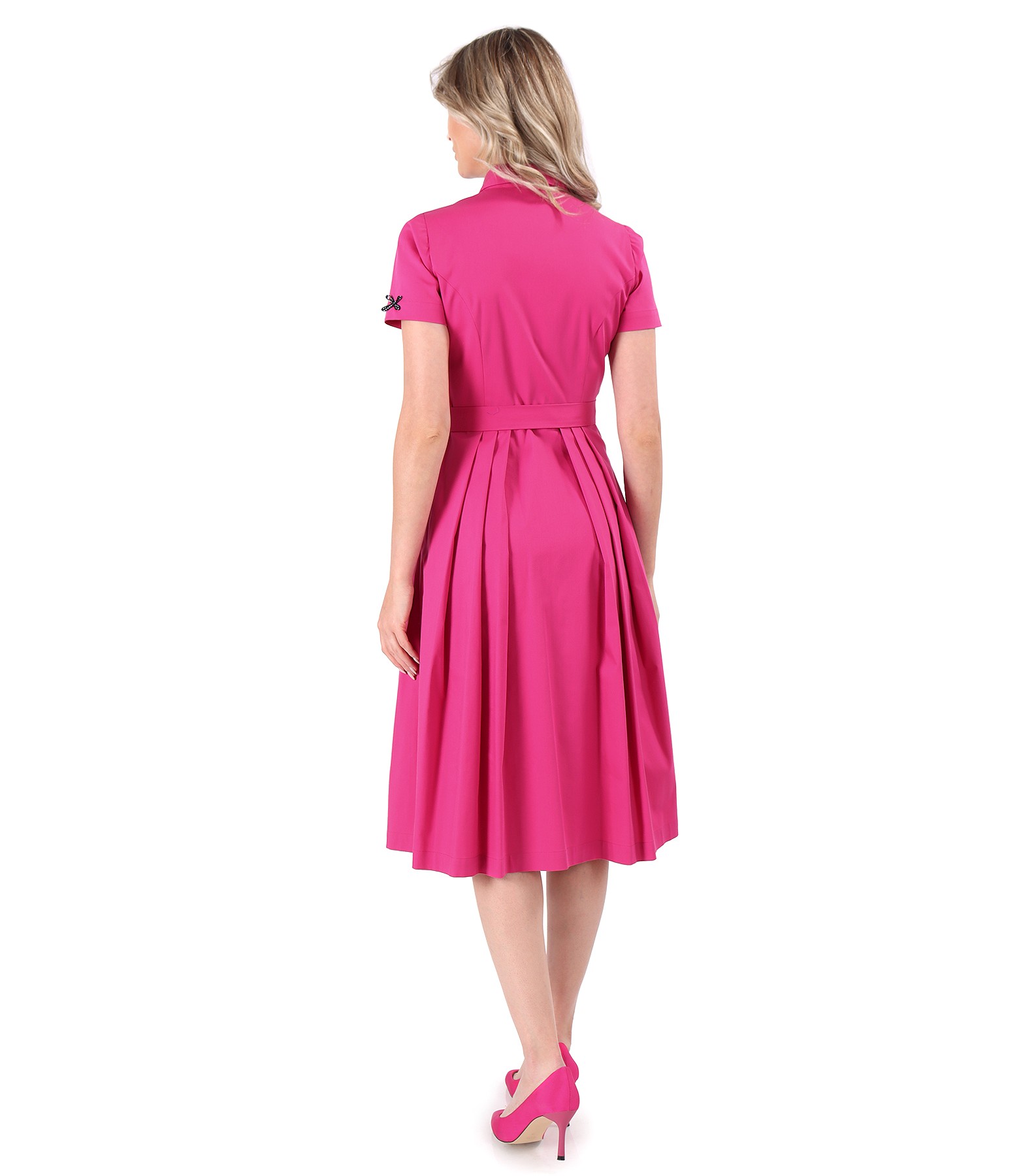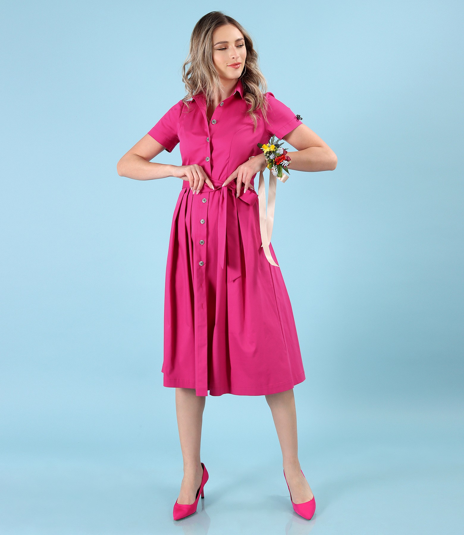 Rochie tip camasa din bumbac elastic uni (Ciclamen), marimea