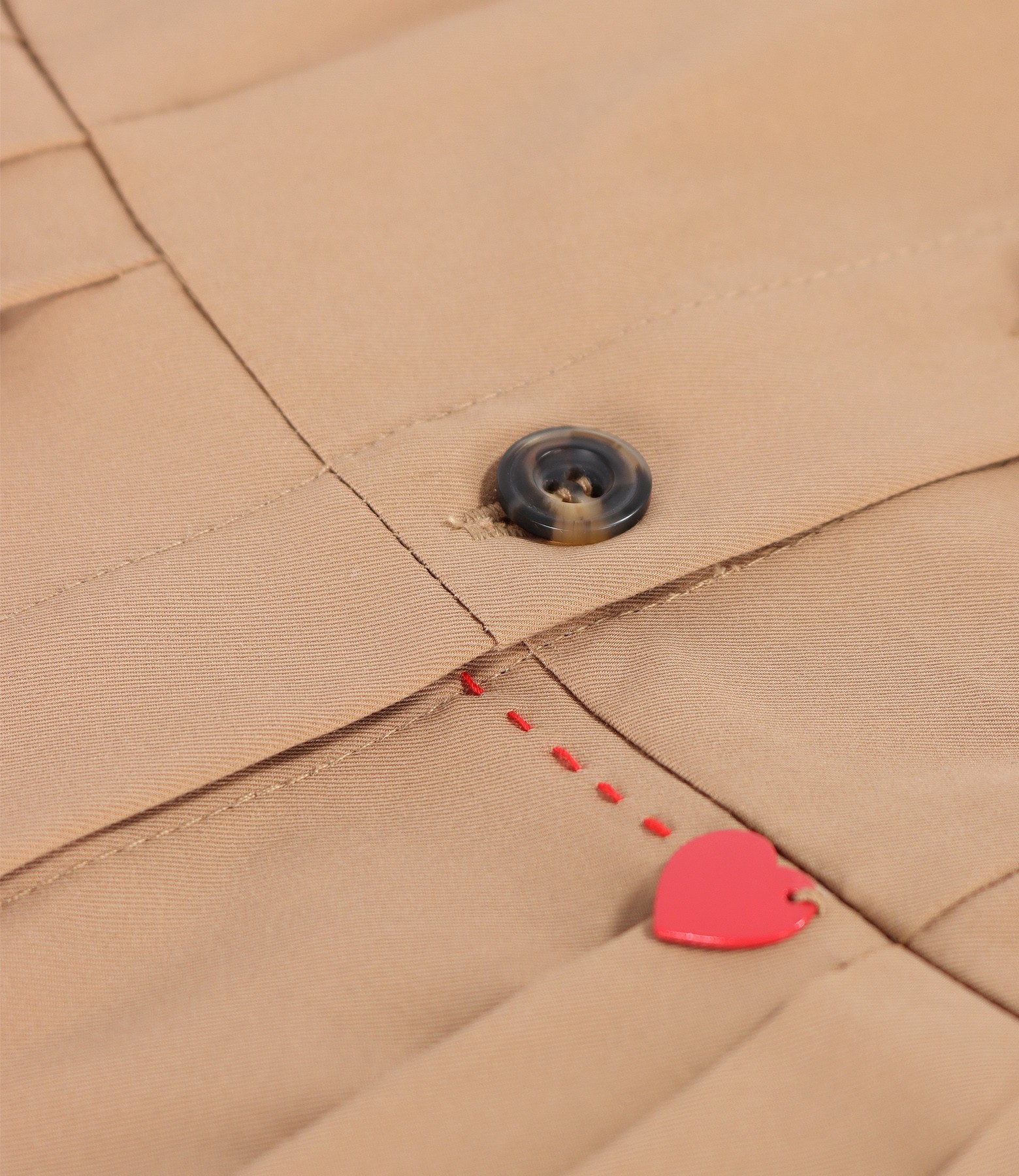 Rochie tip camasa din bumbac elastic uni, necaptusita, cu pliuri pe fata si pe spate, maneci scurte, buzunare laterale si cusatura decorativa in contrast la guler, la terminatie maneci si in talie. Se inchide cu 12 nasturi pe mijloc fata.