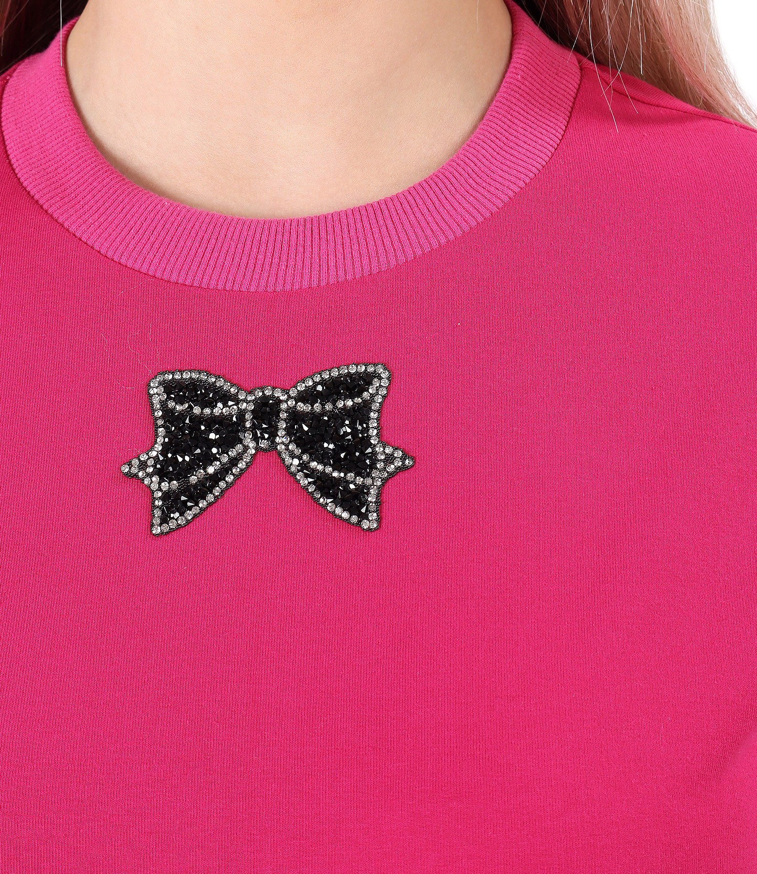Rochie din bumbac elastic uni, cu buzunar pe fata, necaptusita, cu maneci 3/4 si decolteu rotund cu aplicatie de cristale.