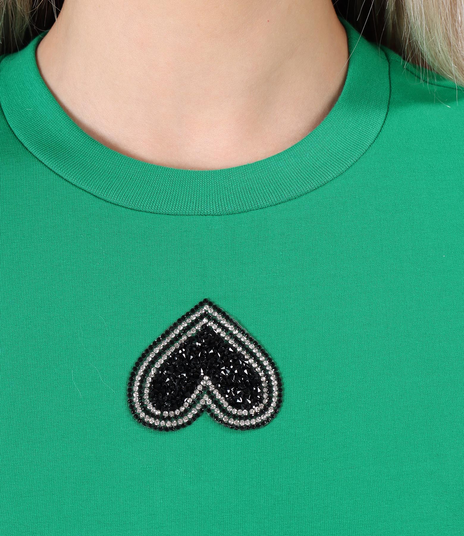 Rochie din bumbac elastic uni, cu buzunar pe fata, necaptusita, cu maneci 3/4 si decolteu rotund cu aplicatie de cristale.