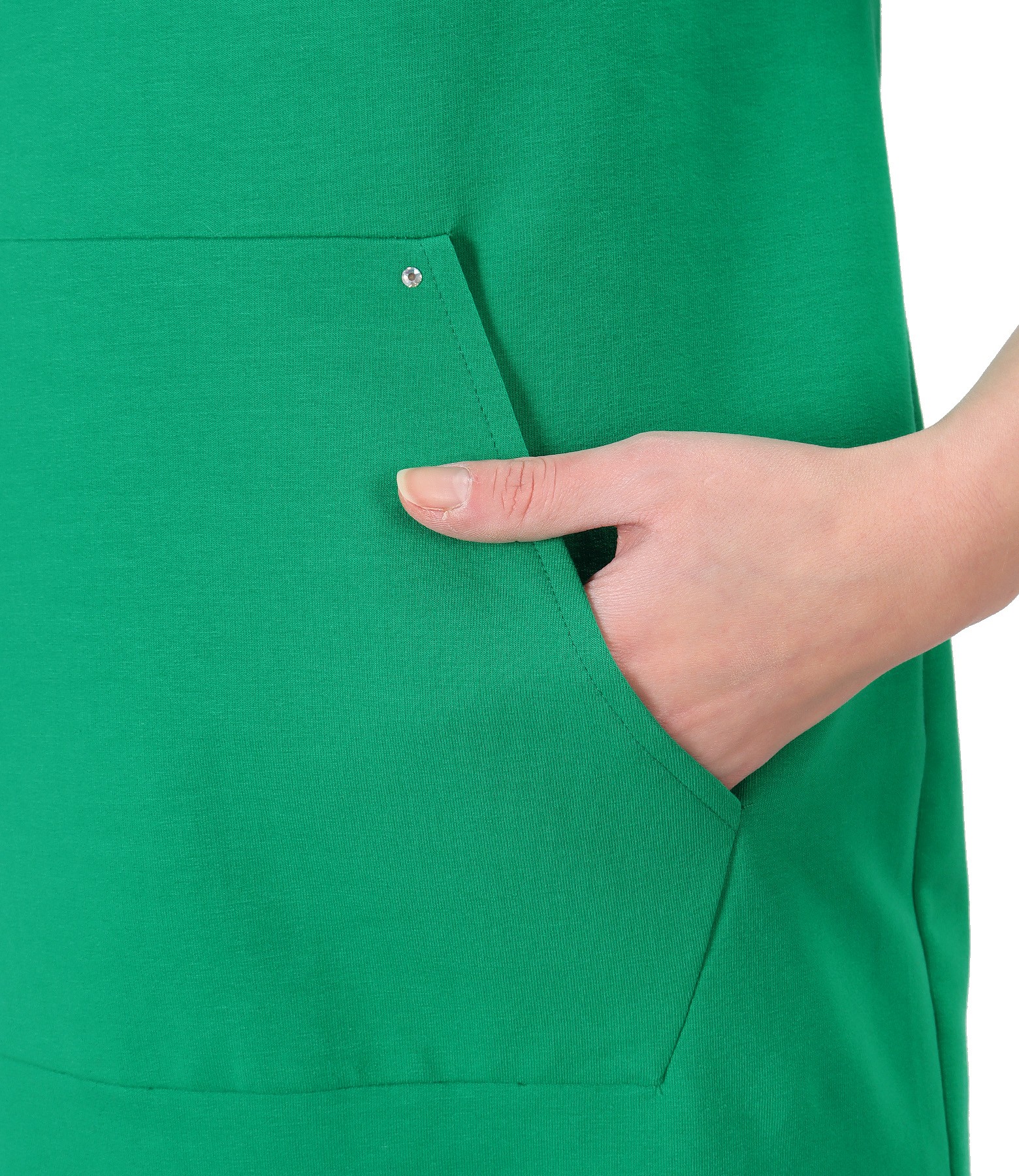 Rochie tip hanorac din bumbac cu buzunar pe fata (Verde), marimea