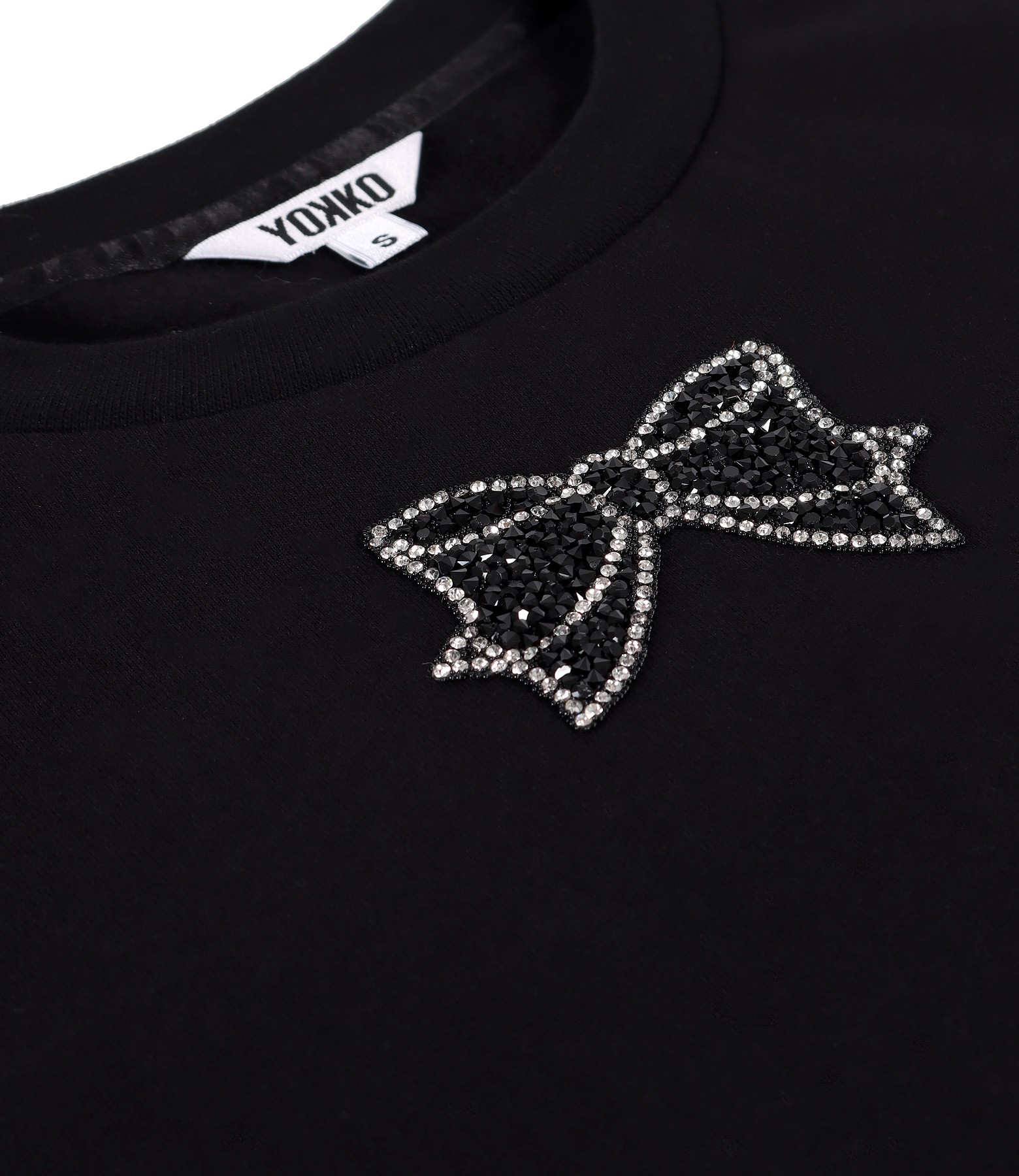 Rochie din bumbac elastic uni, cu buzunar pe fata, necaptusita, cu maneci lungi si decolteu rotund cu aplicatie de cristale.