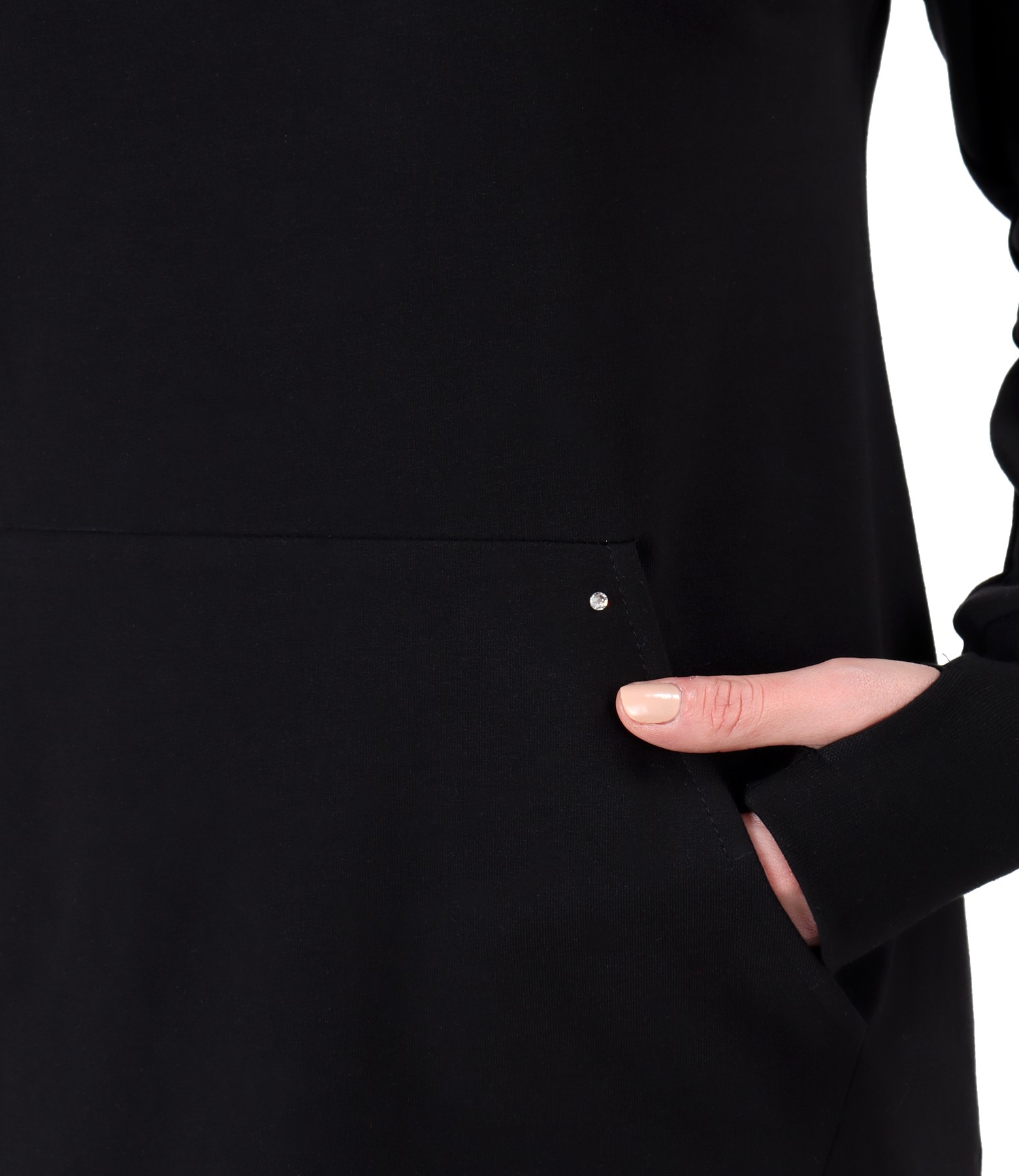 Rochie tip hanorac din bumbac cu buzunar pe fata (Negru), marimea