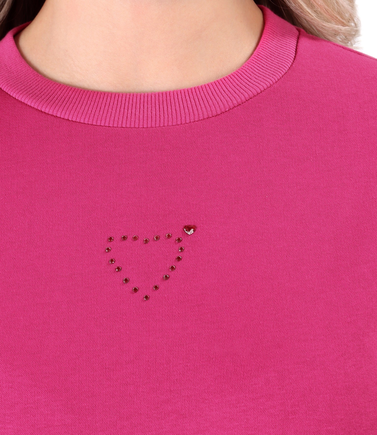 Rochie din bumbac gros uni cu buzunar pe fata, maneci lungi si decolteu rotund cu aplicatie de cristale.