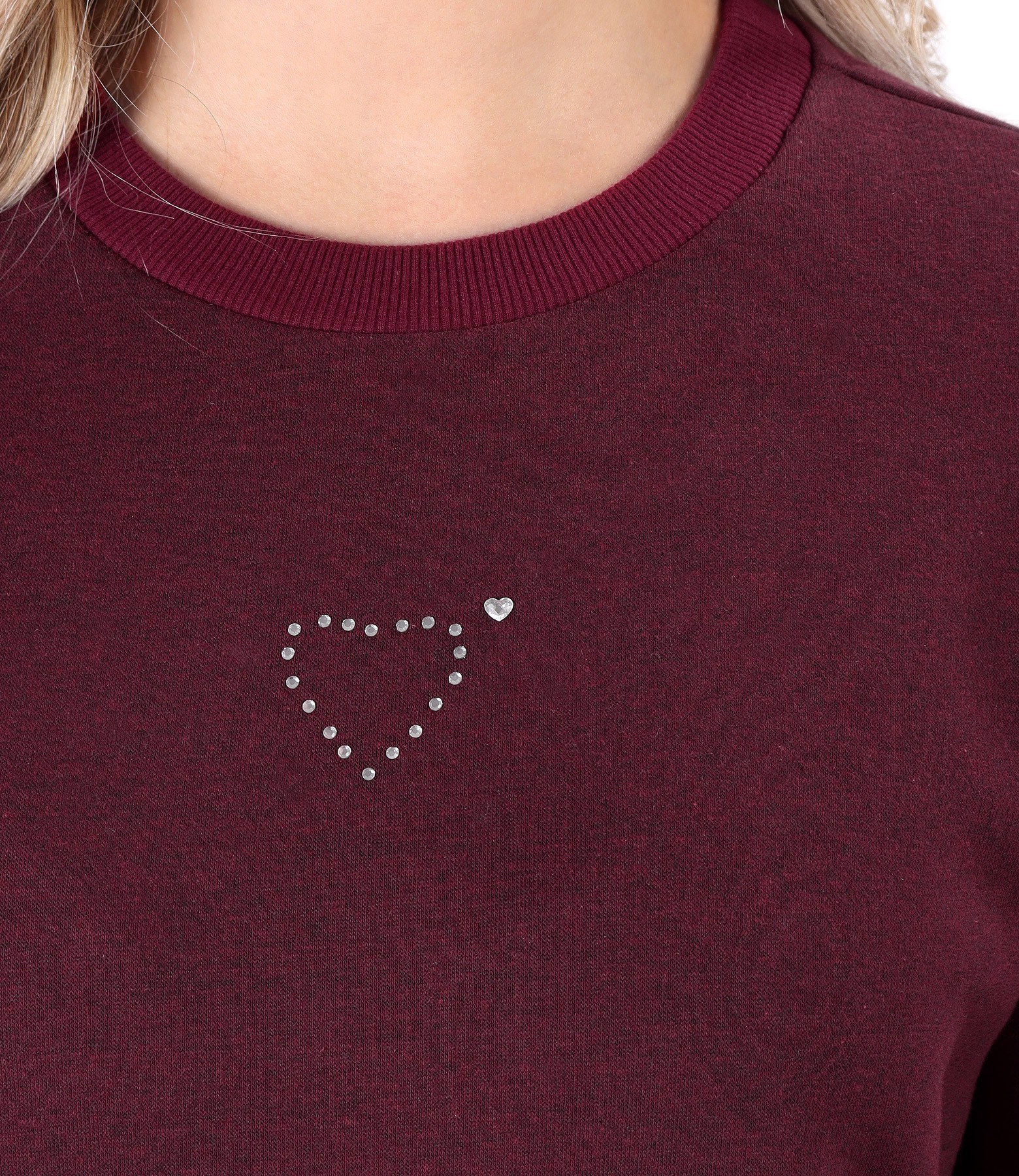 Rochie din bumbac gros melanj cu buzunar pe fata, maneci lungi si decolteu rotund cu aplicatie de cristale.