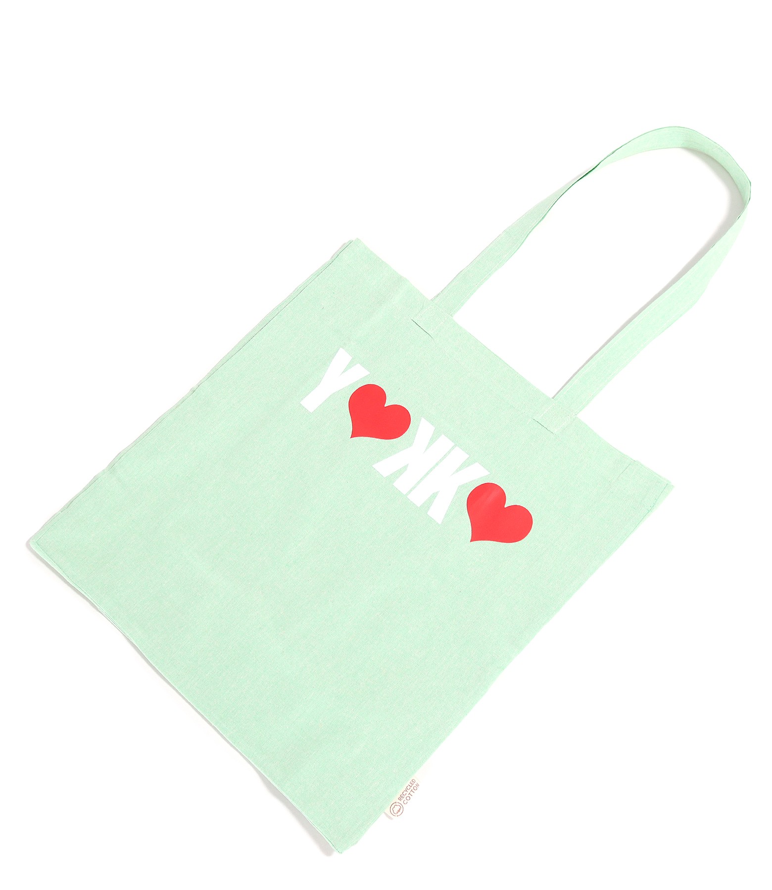 Sacosa textila din bumbac reciclat, imprimata pe fata.