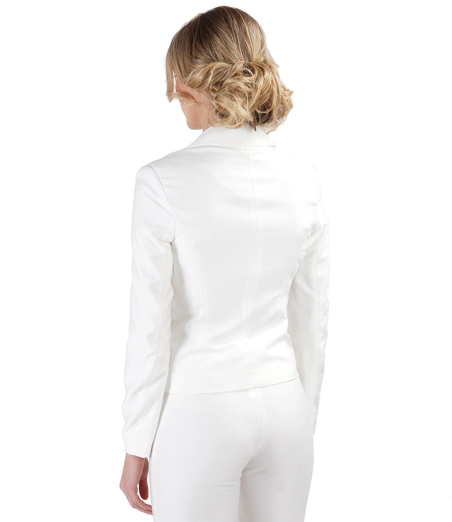 Sacou cu viscoza si brosa accesoriu (Alb), marimea