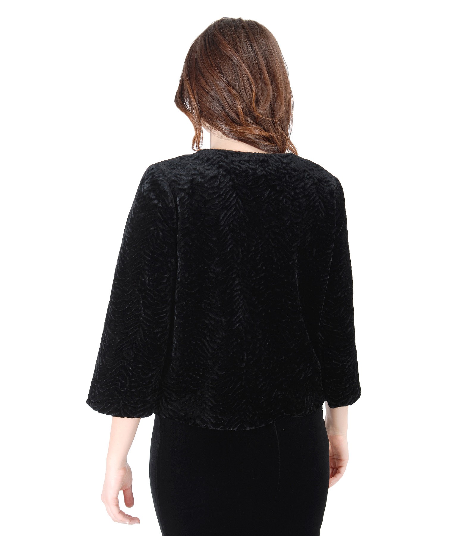 Sacou din blana ecologica cu structura tip astrahan (Negru), marimea