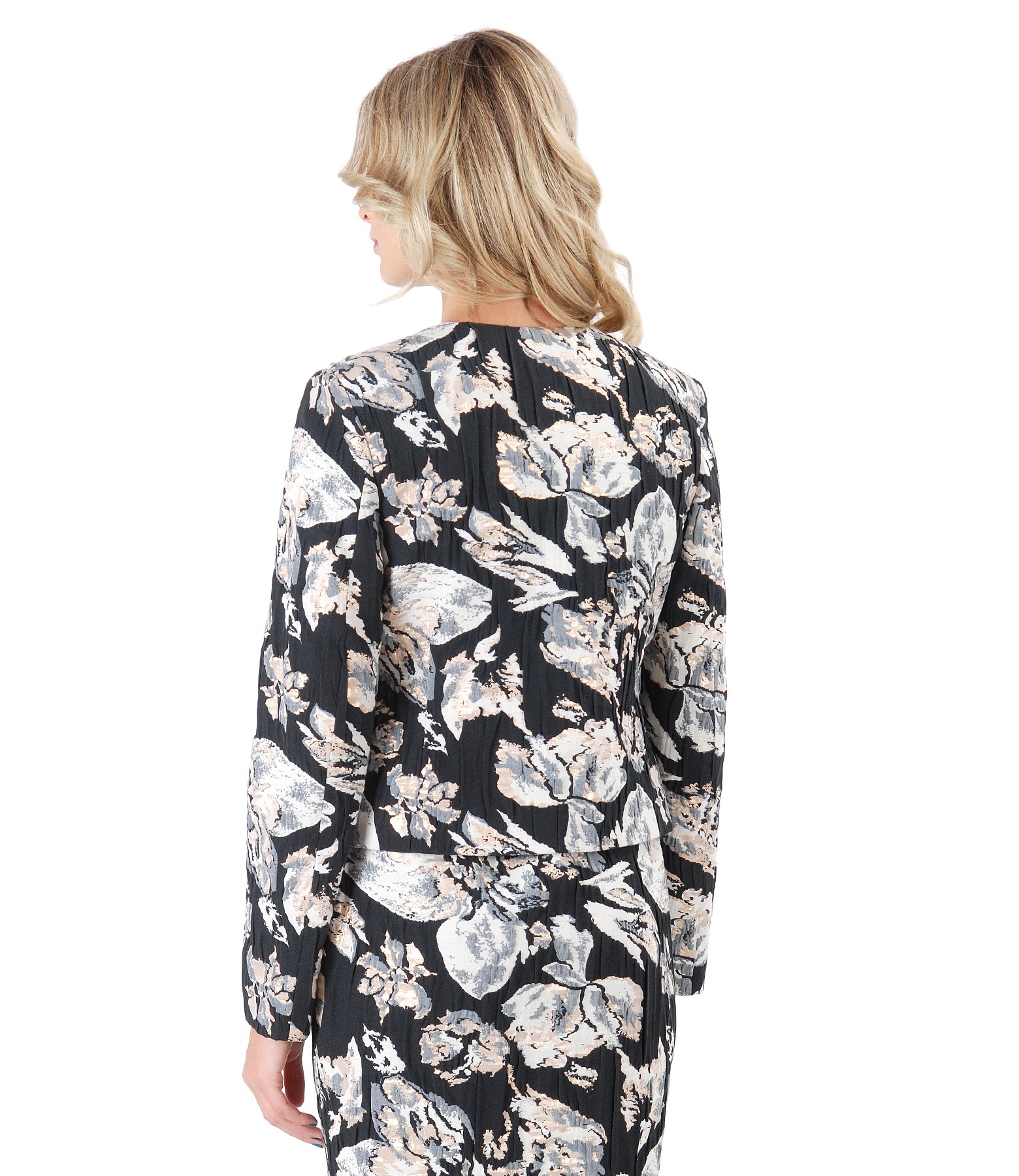 Sacou din brocart de bumbac si perle nude aplicate la umar si decolteu (Alb-Auriu-Negru), marimea