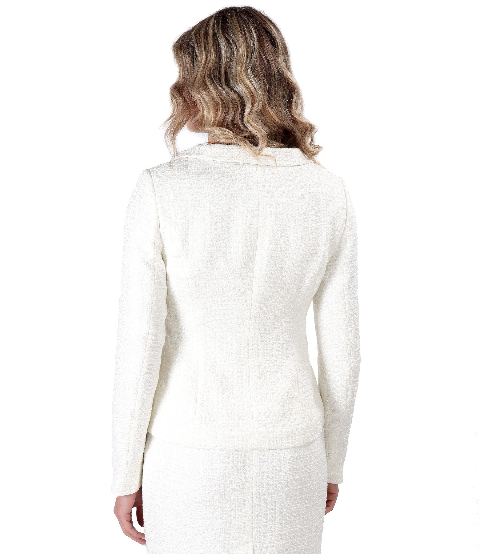 Sacou din bucle cu viscoza cu brosa cu aplicatie de cristale (Alb Ecru), marimea