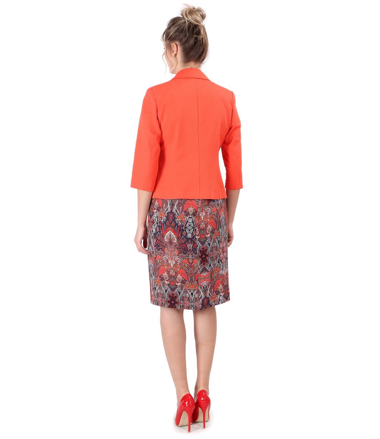 Sacou office, din bumbac elastic texturat, necaptusit, cambrat si cu maneci 3/4.
