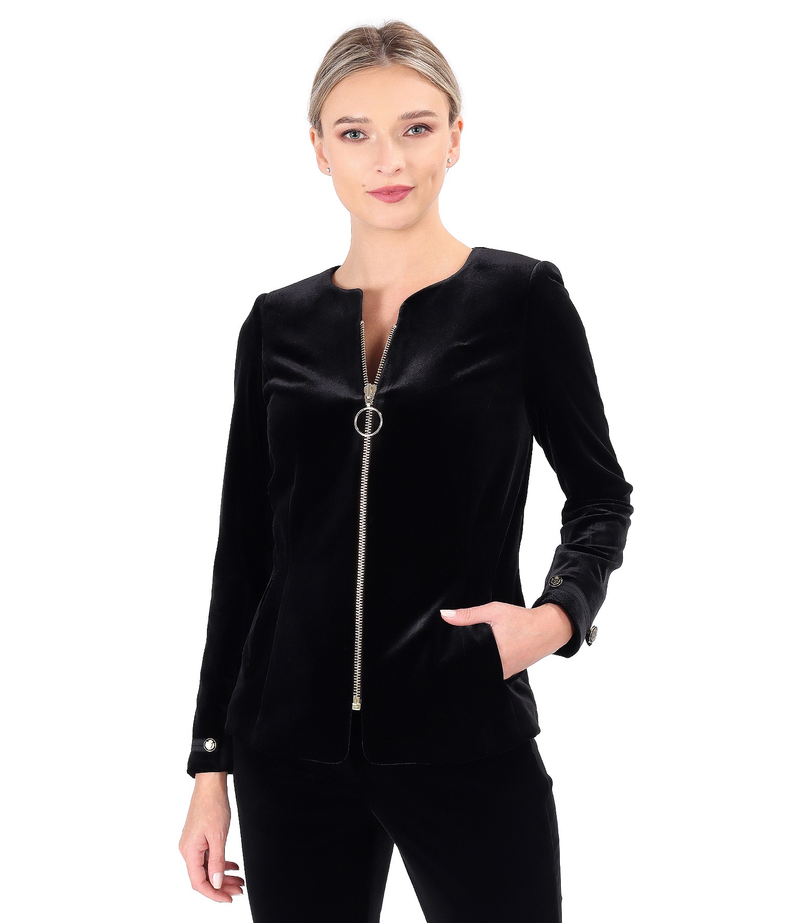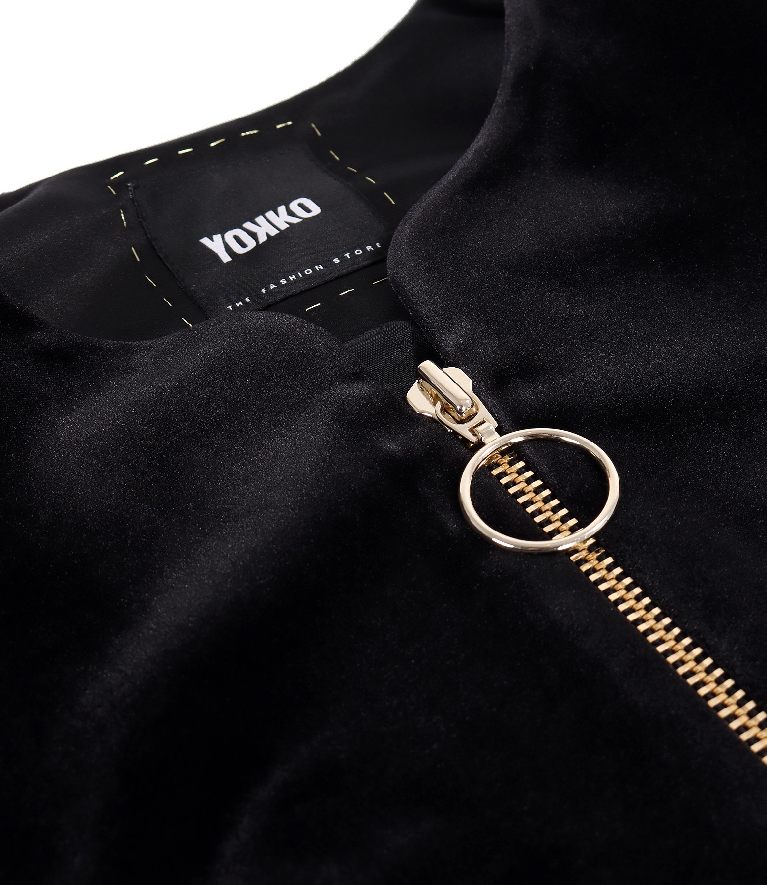 Sacou din catifea elastica cu fermoar pe fata (Negru), marimea