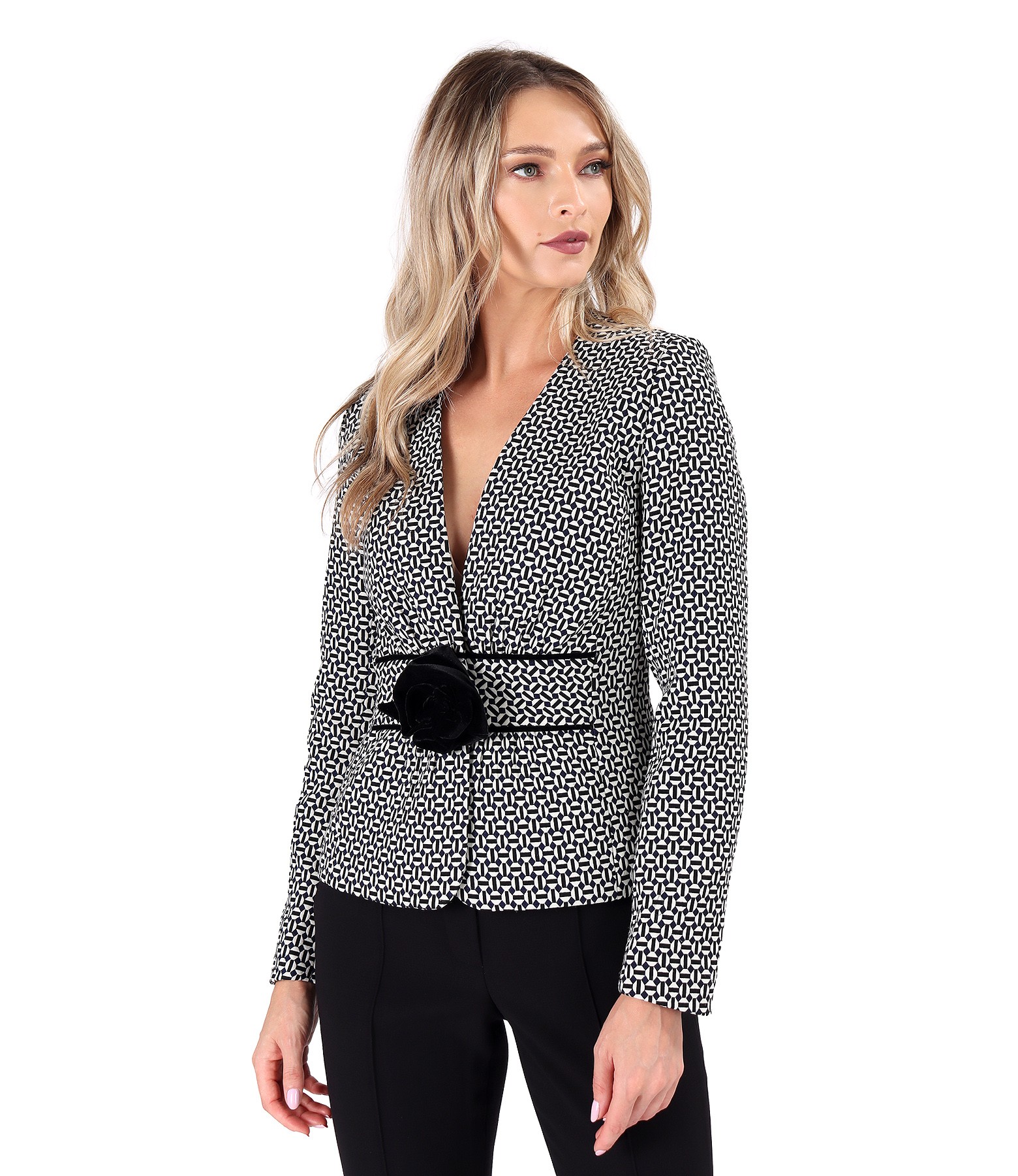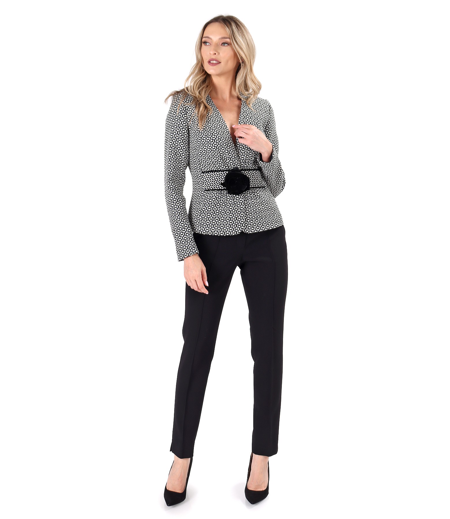 Sacou din stofa elastic cu bumbac si cu floare din catifea pe fata