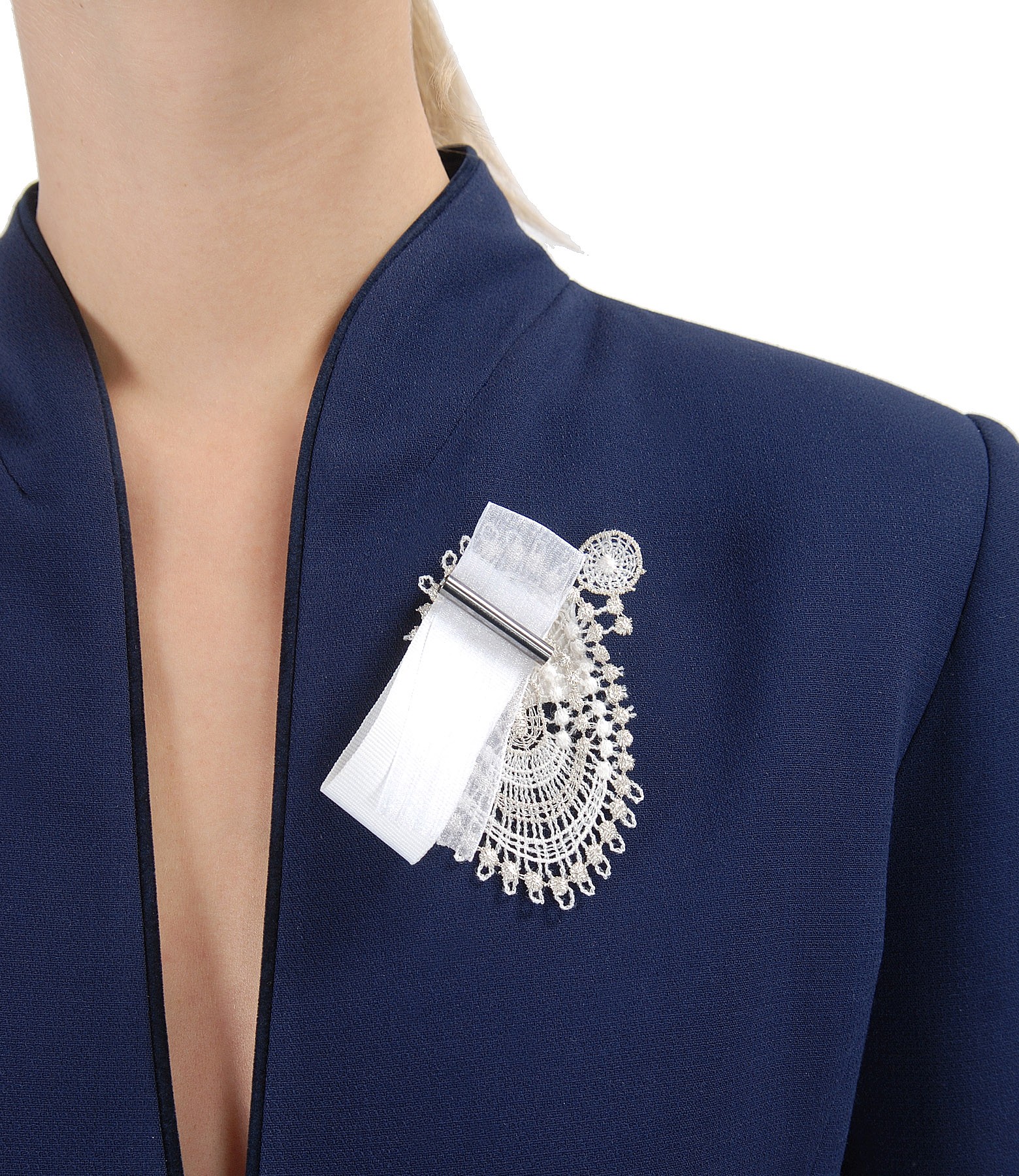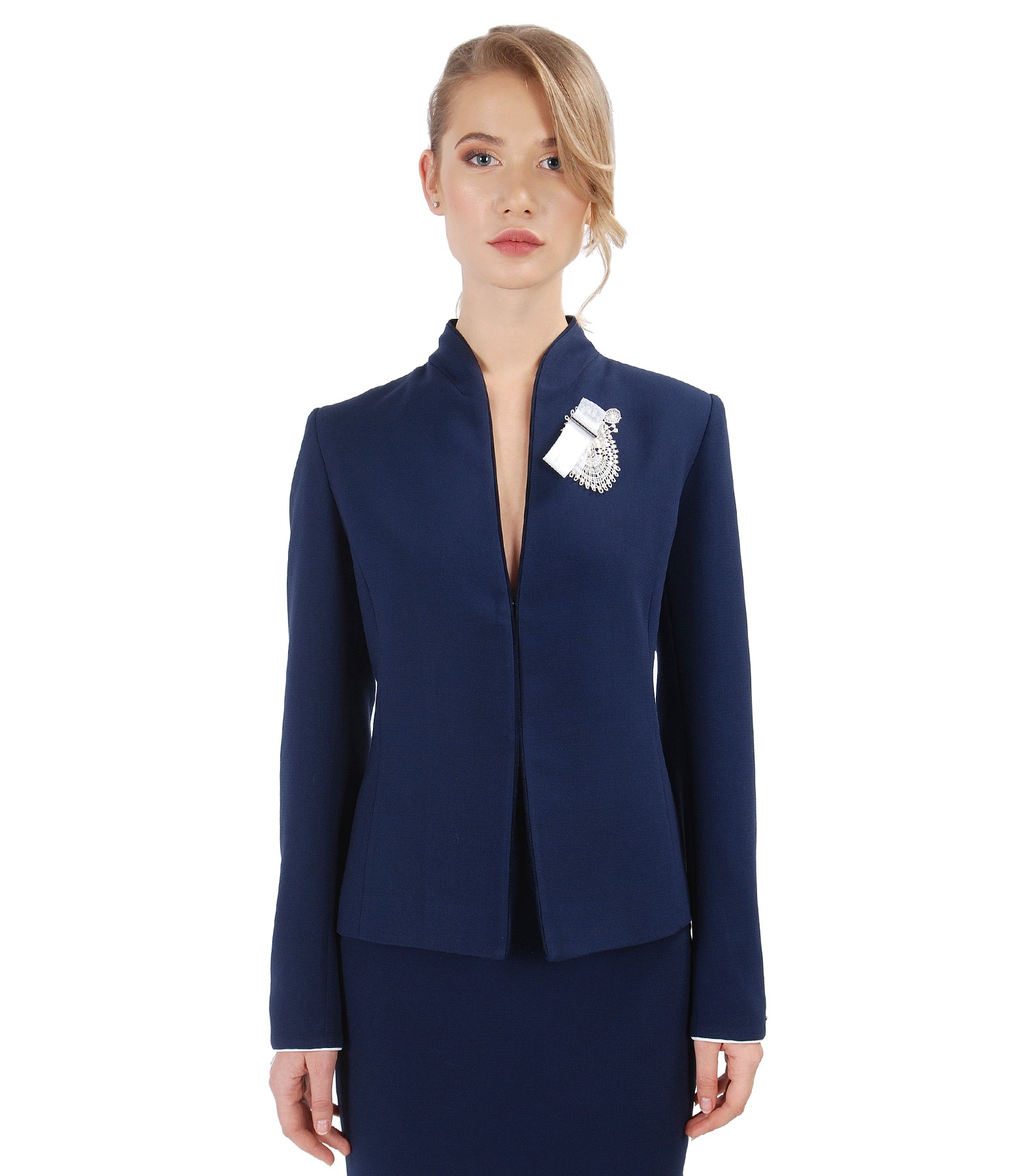 Sacou din stofa elastica cu brosa accesoriu (Bleumarin), marimea