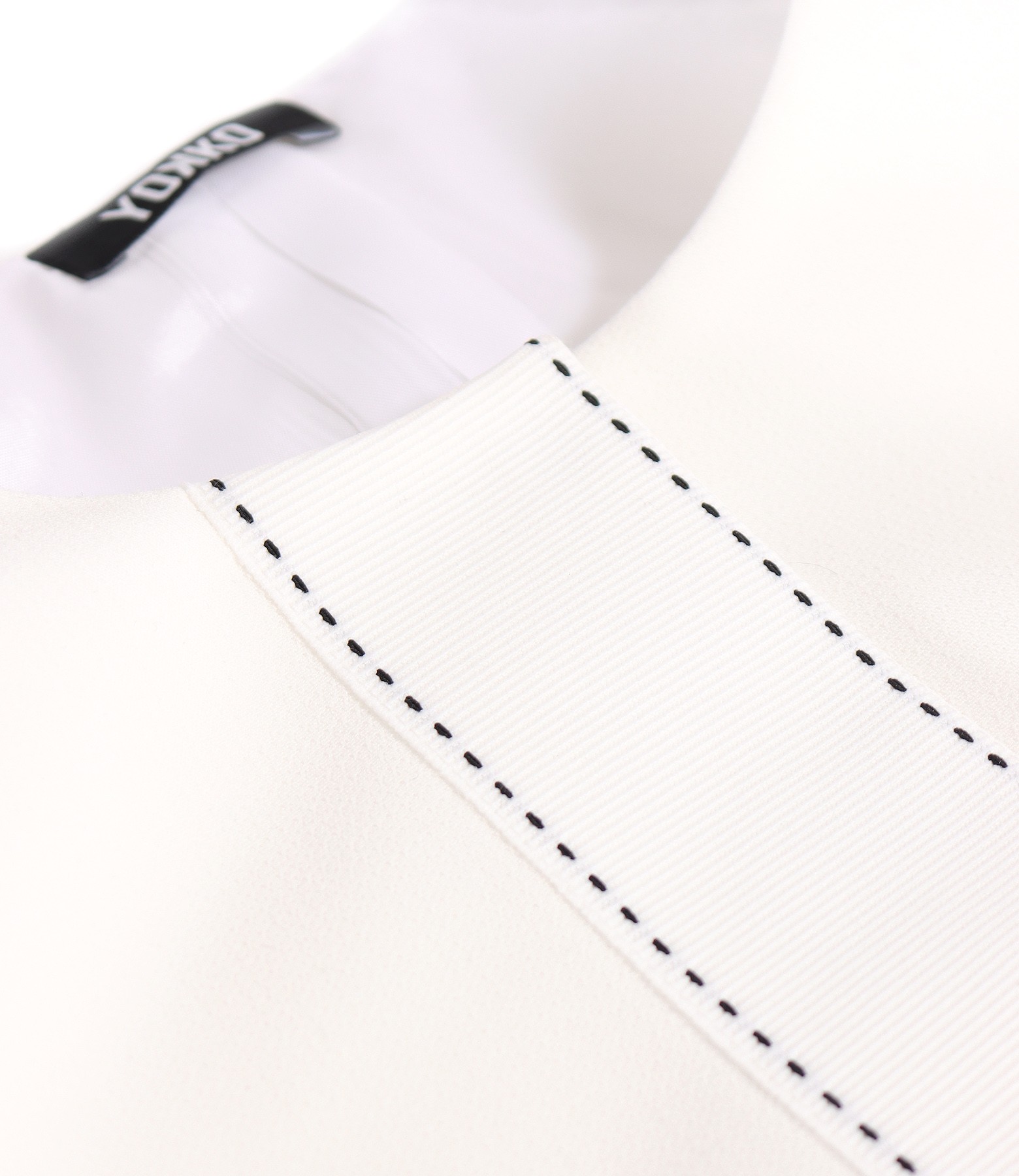 Sacou elegant cu brosa detasabila in talie (Alb-Ecru), marimea