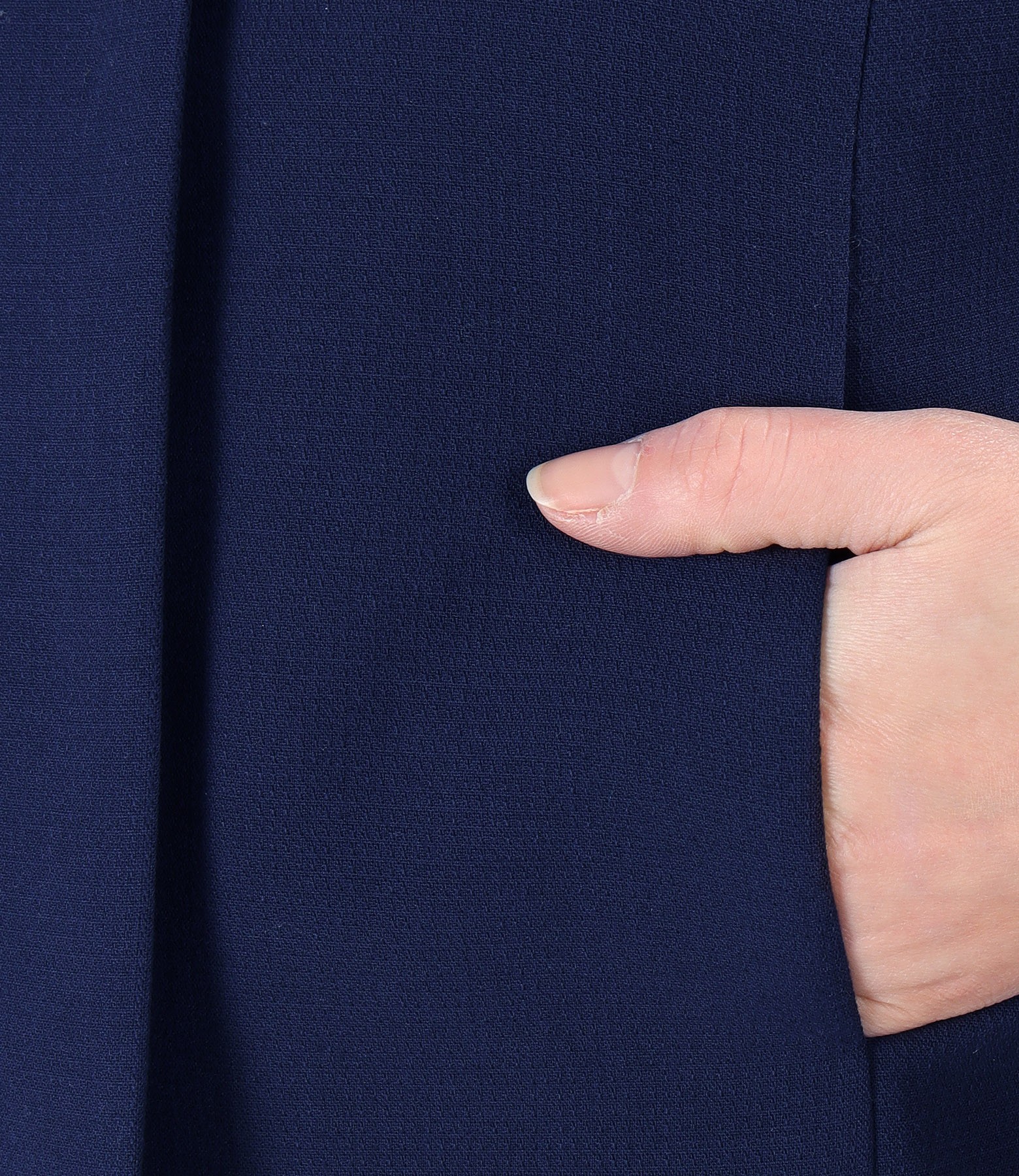 Sacou elegant din stofa elastica cu maneci 3/4 cu mansete ample tip peplum, captusit, cu guler gen tunica si buzunare laterale. Se inchide cu 1 nasture si 3 perechi de capse.