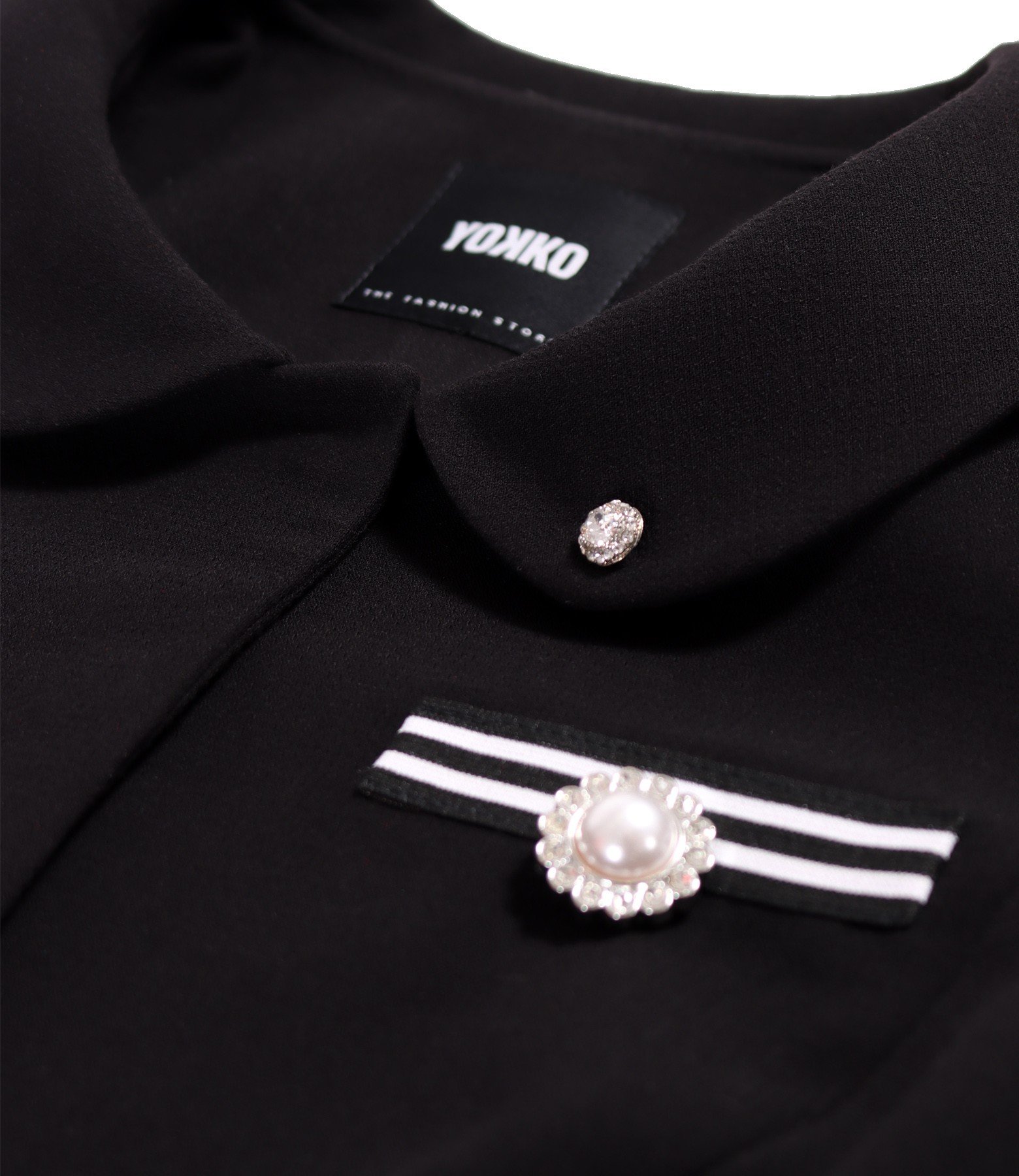 Sacou elegant cu nasturi decorativi cu perle (Negru), marimea