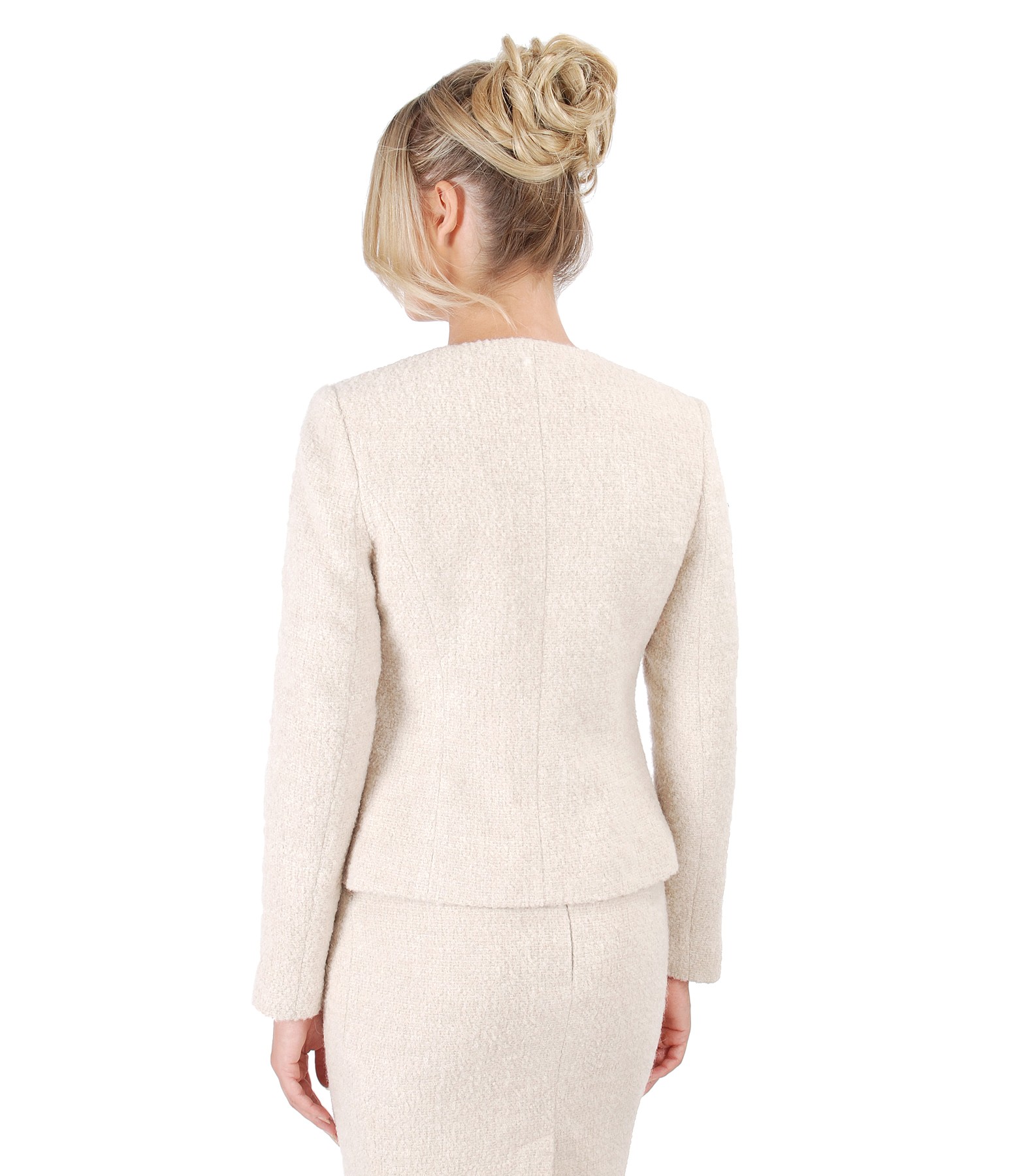 Sacou elegant din bucle cu lana si alpaca (Bej), marimea