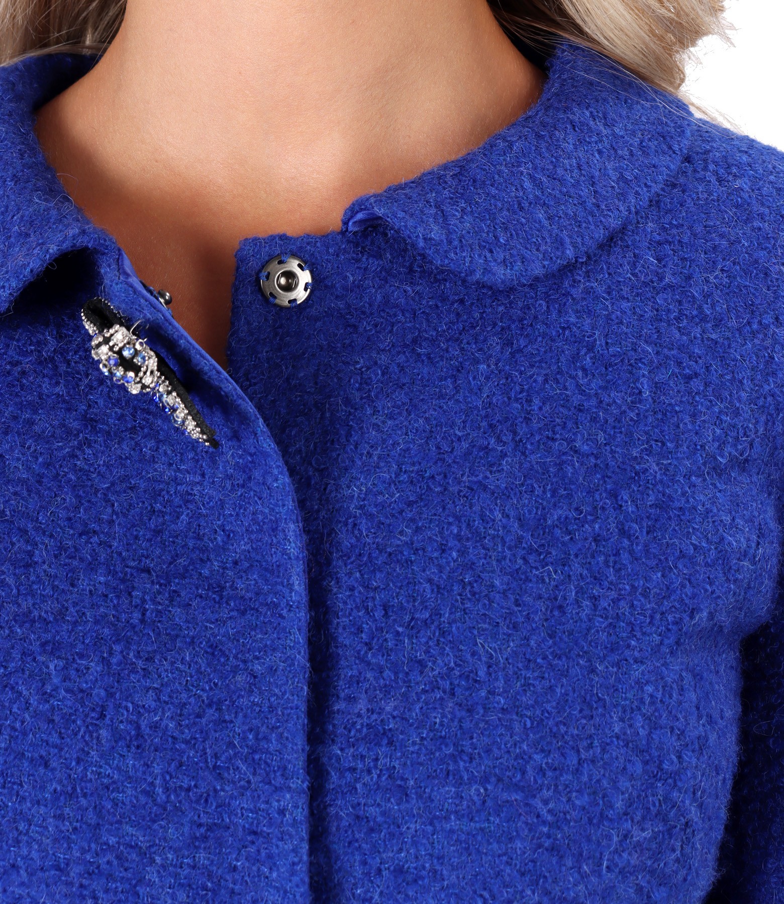 Sacou elegant din bucle cu lana si alpaca (Albastru Royal), marimea